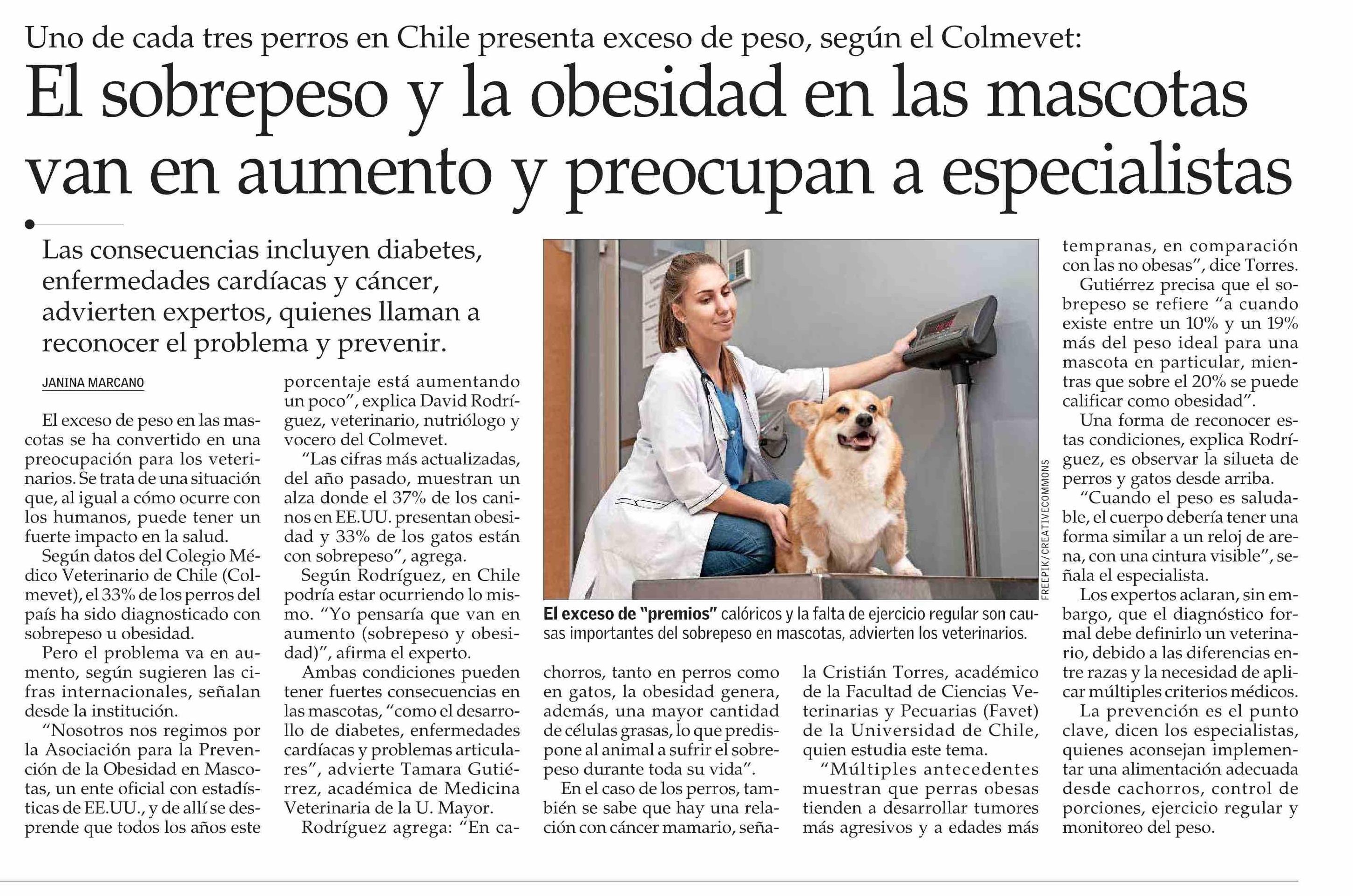 El sobrepeso y la obesidad en las mascotas van en aumento y preocupan a especialistas 28-05-2025 El Mercurio |