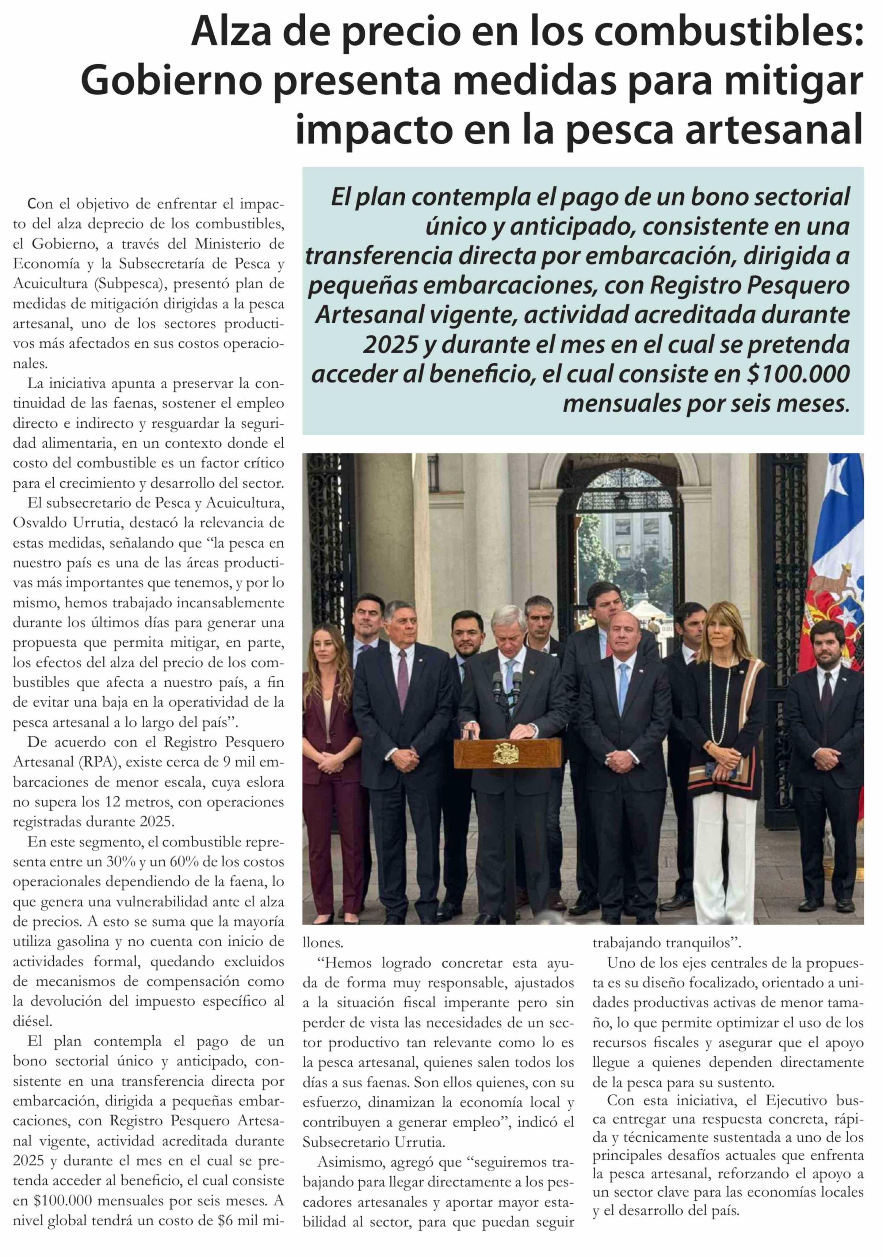 Título: Alza de precio en los combustibles: Gobierno presenta medidas para mitigar impacto en la pesca artesanal