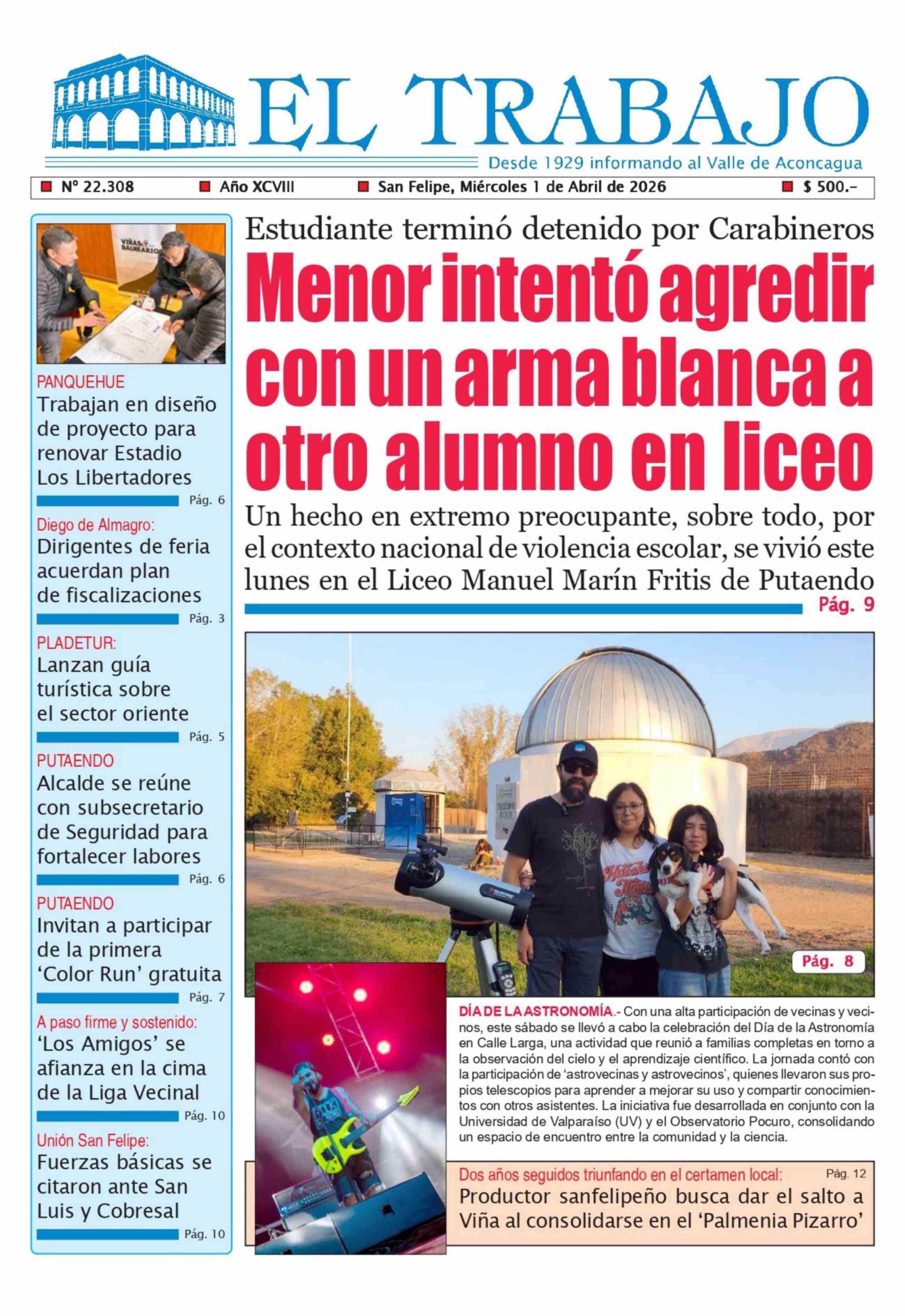| Fecha: | 01-04-2026 | Sector: | Portada | Región: | Región de Valparaíso |