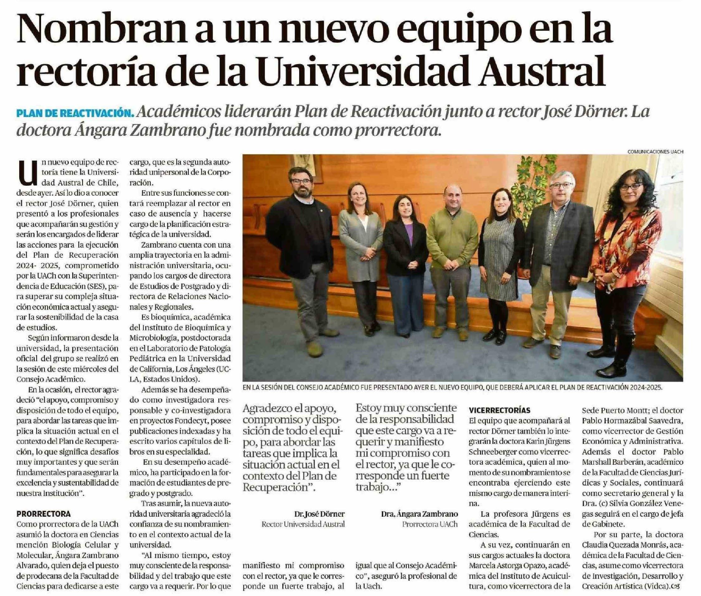 Nombran a un nuevo equipo en la rectoría de la Universidad Austral 25-04-2024 El Austral de Osorno |