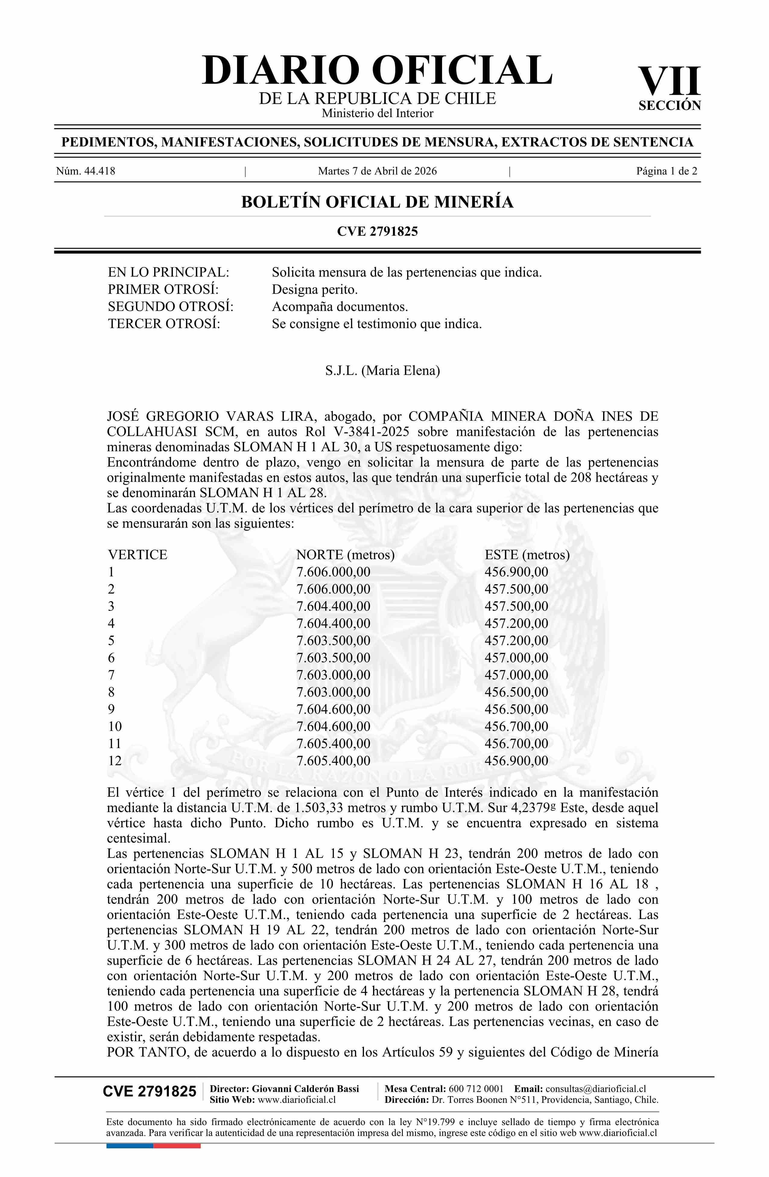 07-04-2026 DIARIO OFICIAL CHILE - BOLETÍN OFICIAL DE MINERÍA