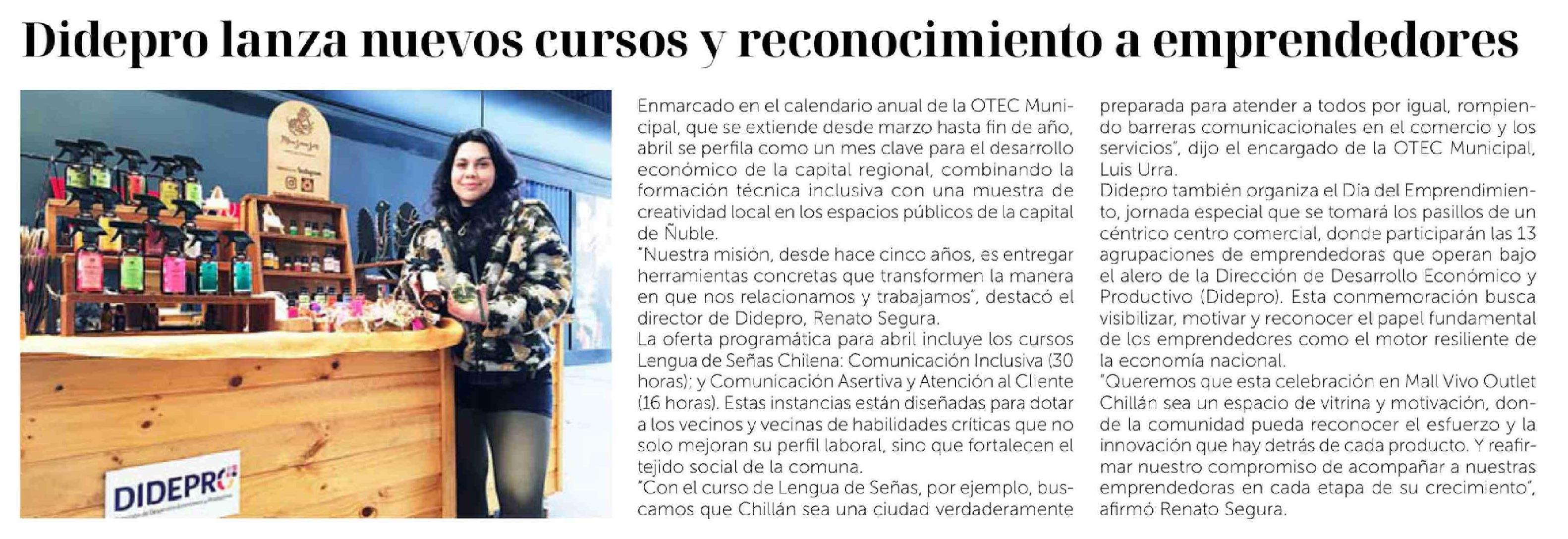 Didepro lanza nuevos cursos y reconocimiento a emprendedores 24-03-2026 La Discusión |