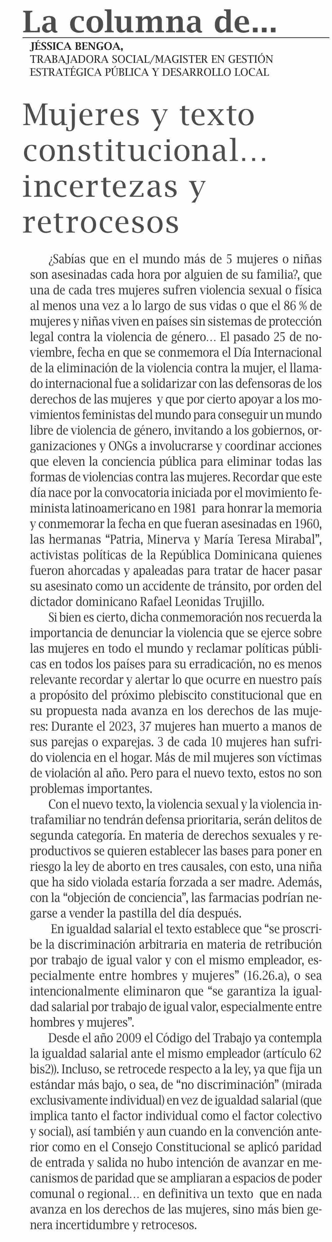Mujeres y texto constitucional... incertezas y retrocesos 09-12-2023 El Pingüino |