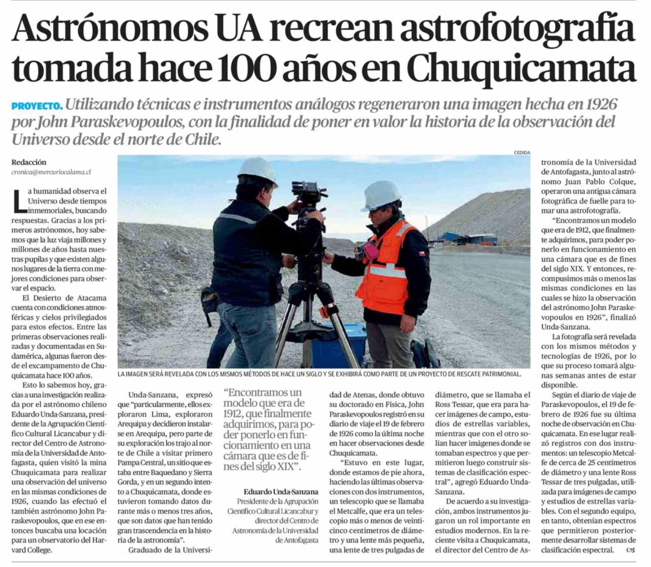 Título: Astrónomos UA recrean astrofotografia tomada hace 100 años en Chuquicamata