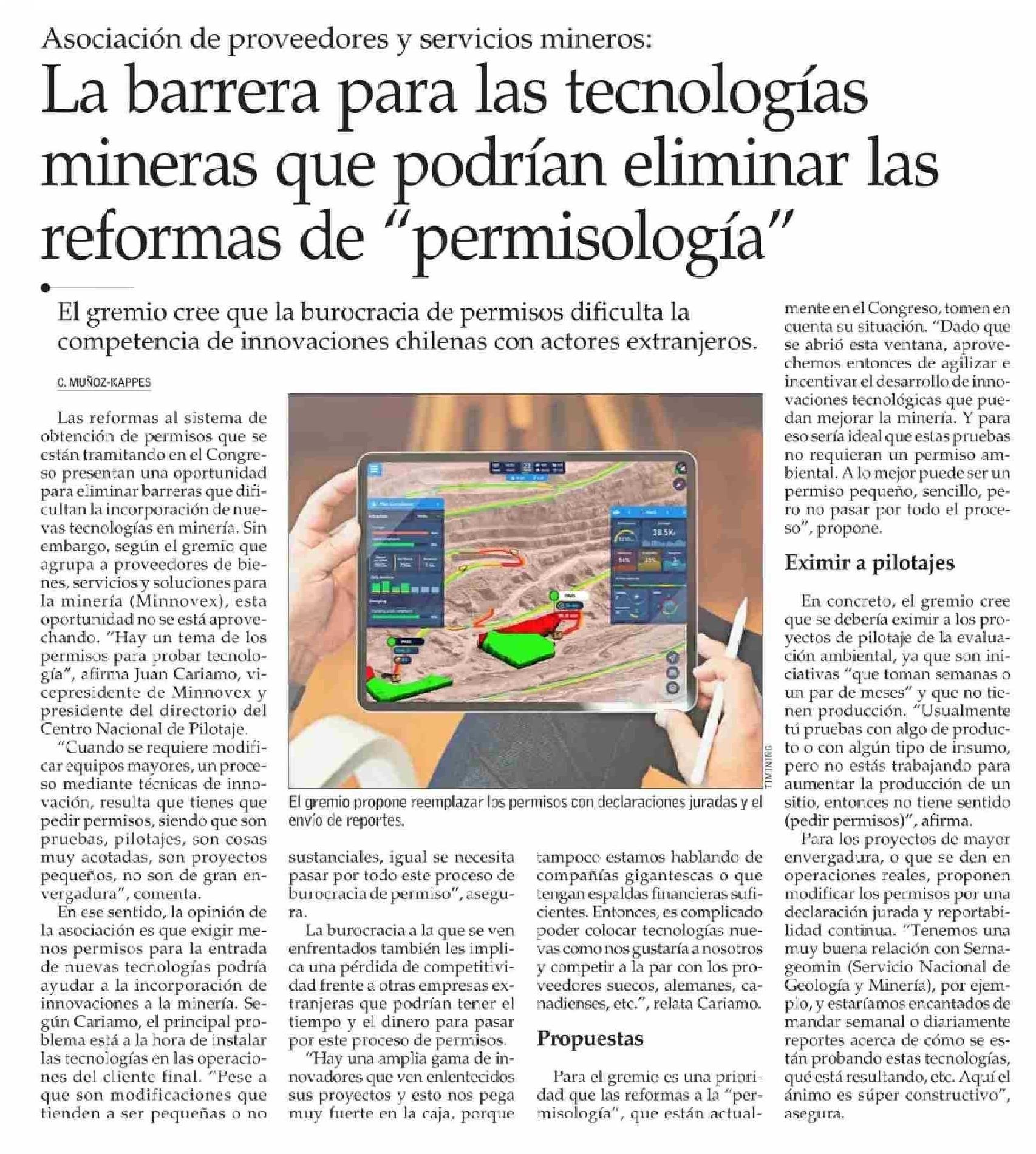 La barrera para las tecnologías mineras que podrían eliminar las reformas de “permisología” 18-04-2025 El Mercurio |
