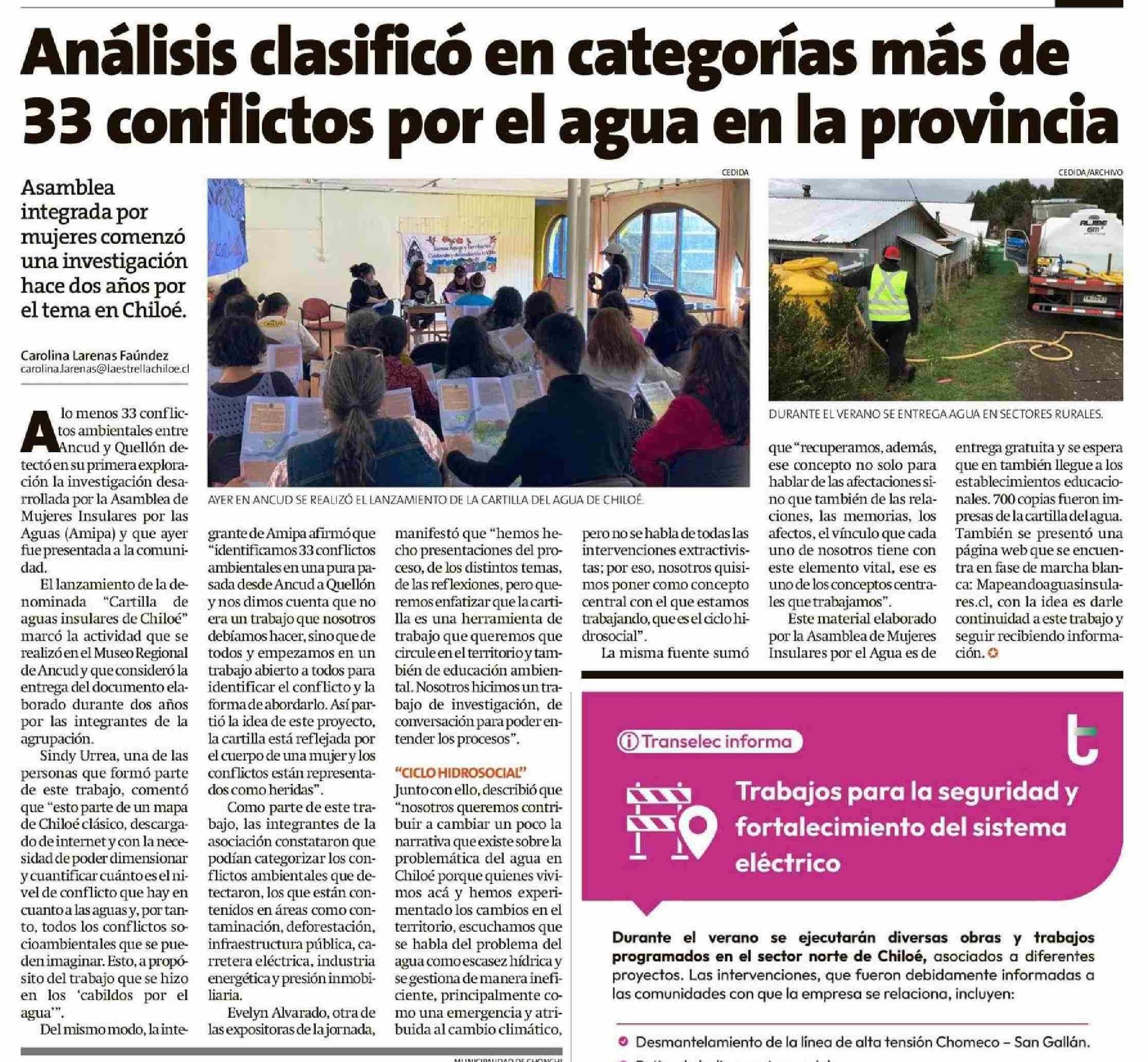 Análisis clasificó en categorías más de 33 conflictos por el agua en la provincia 25-01-2026 La Estrella de Chiloé |