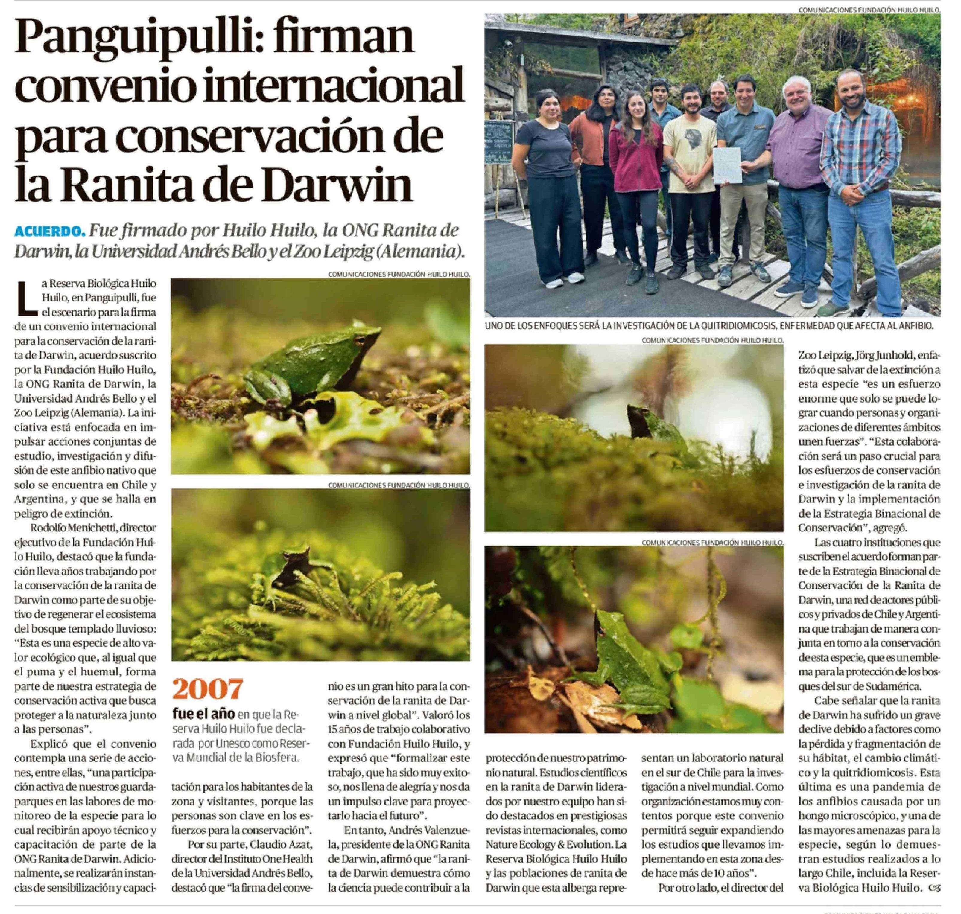 Panguipulli: firman convenio internacional para conservación de la Ranita de Darwin 10-02-2026 Diario Austral Región de Los Ríos |