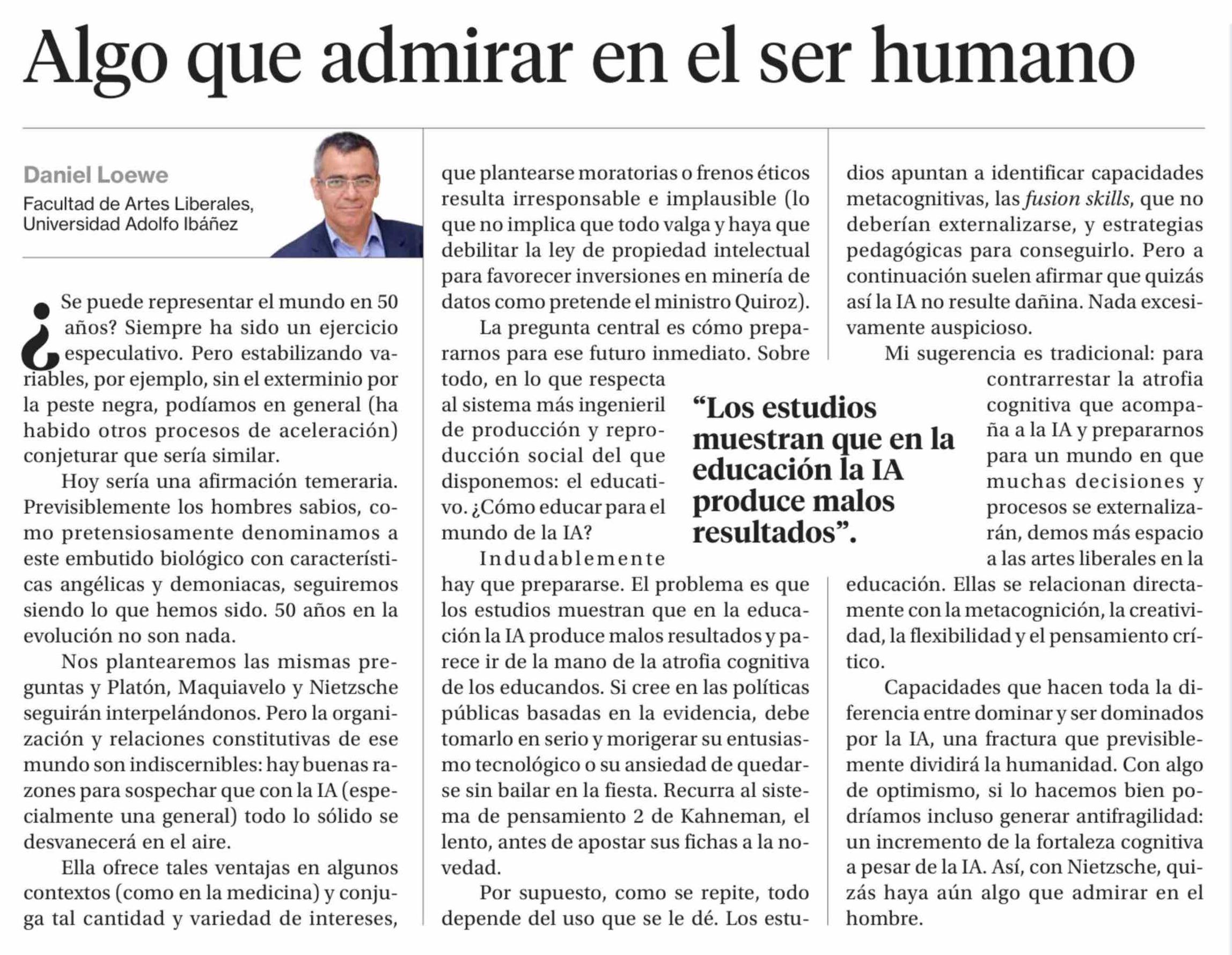 Columnas de Opinión: Algo que admirar en el ser humano 28-04-2026 La Segunda |