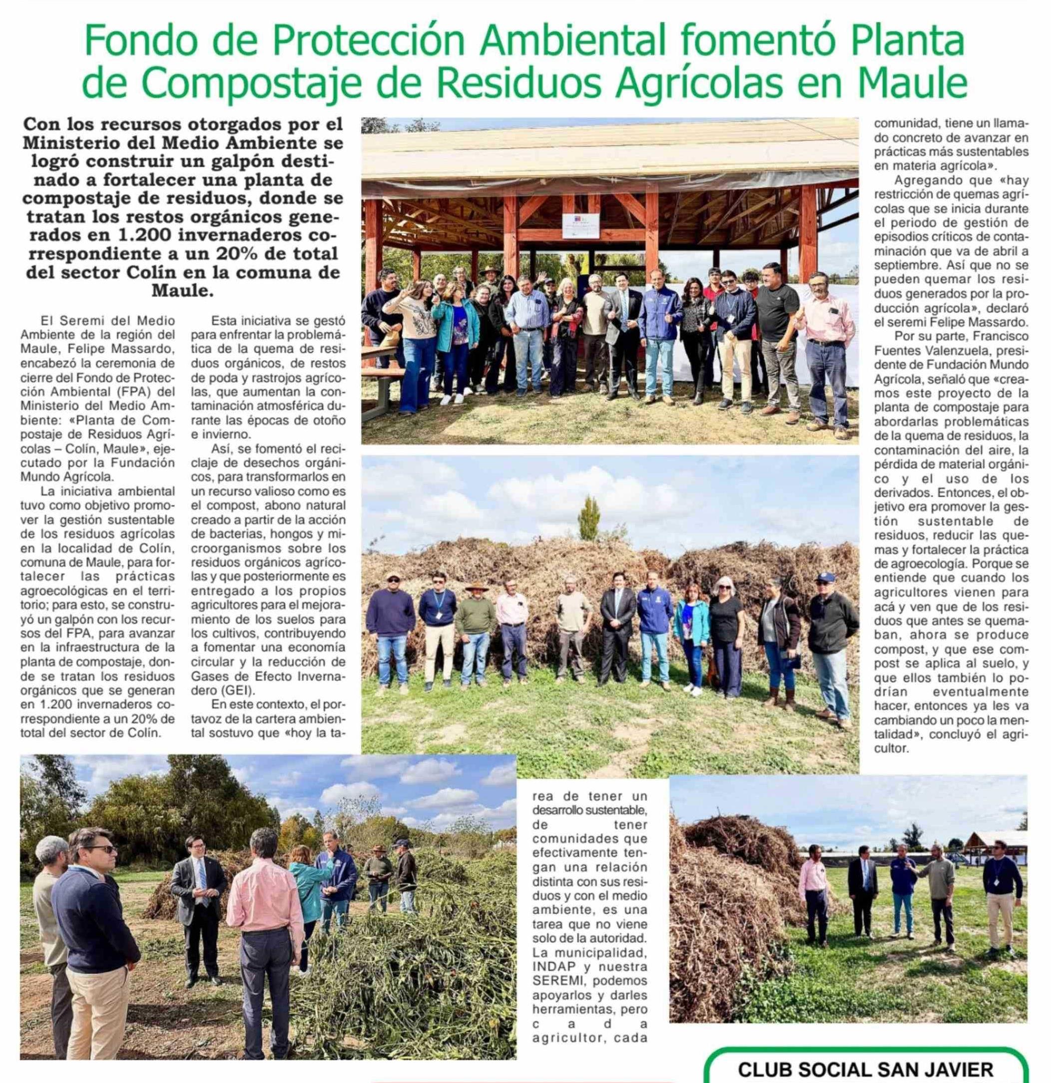 Fondo de Protección Ambiental fomento Planta de Compostaje de Residuos Agrícolas en Maule 28-04-2026 Maule Hoy |