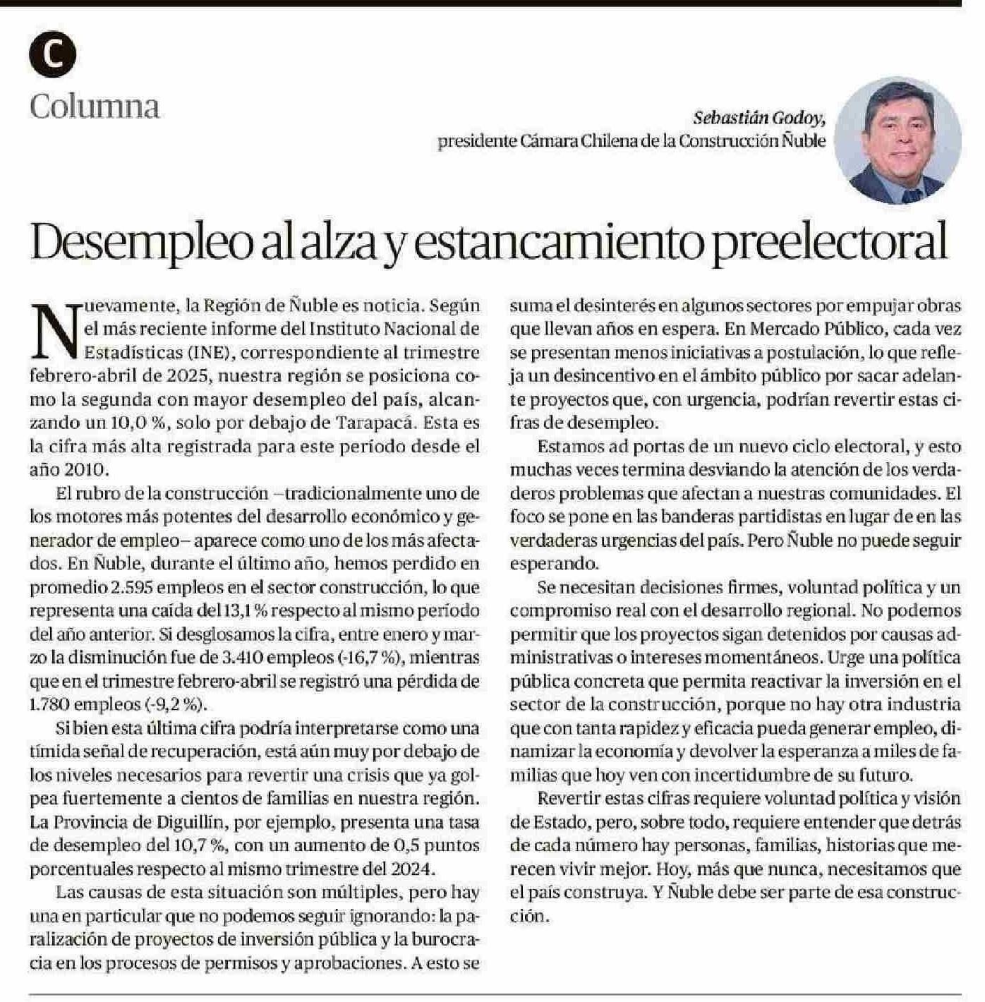 Columnas de Opinión: Desempleo al alza y estancamiento preelectoral 07-06-2025 Crónica de Chillán |
