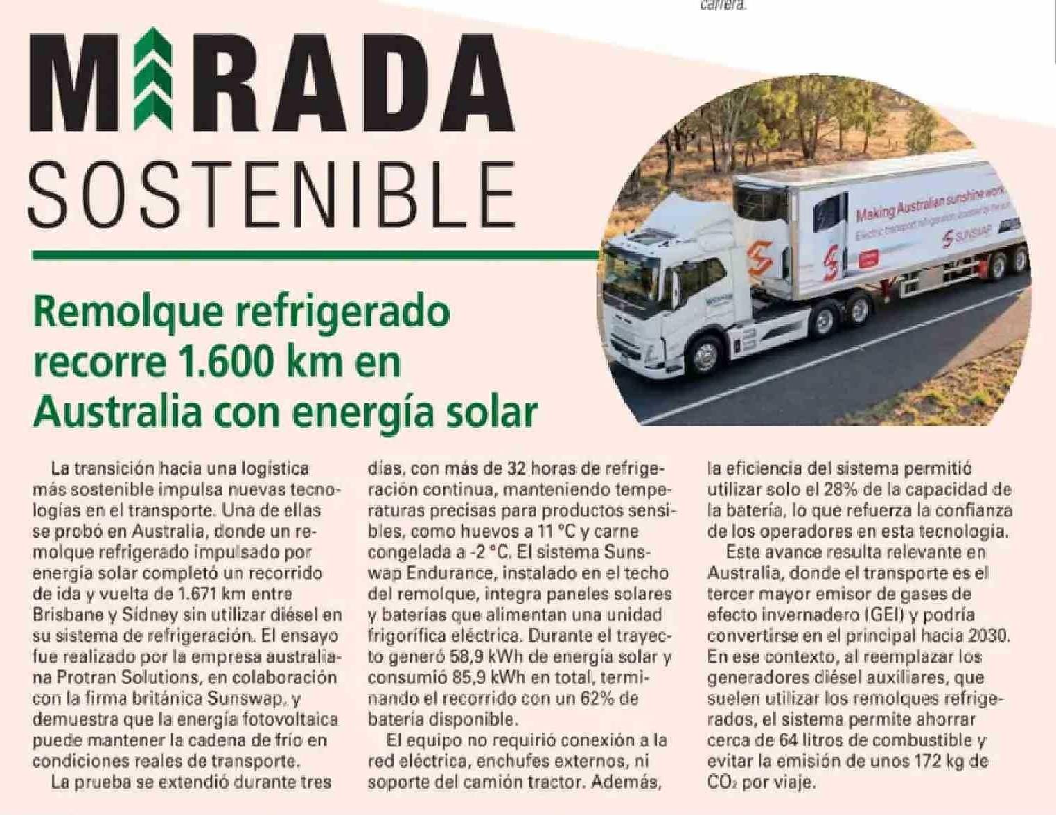 Remolque refrigerado recorre 1.600 km en Australia con energía solar 11-03-2026 El Mercurio |