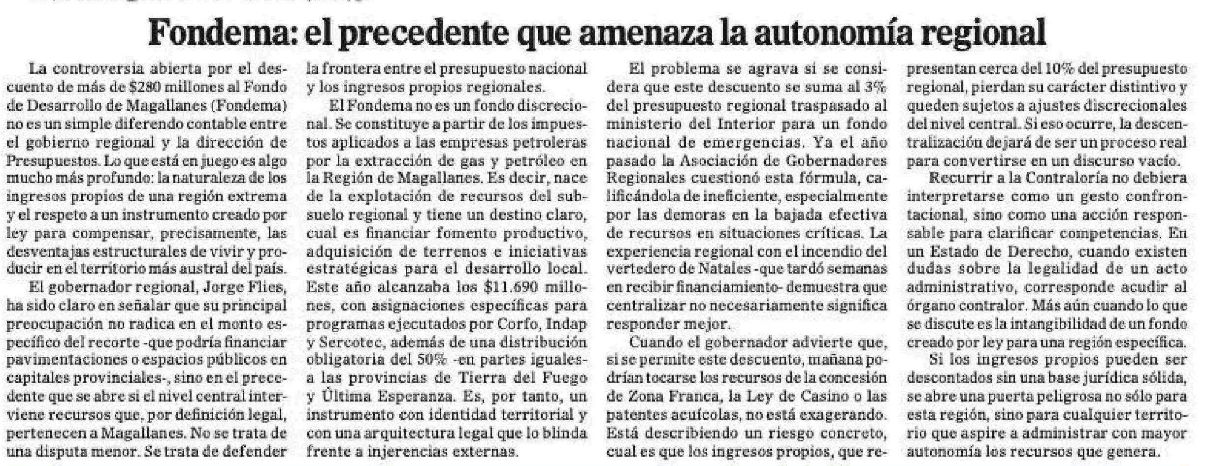 Título: EDITORIAL: Fondema: el precedente que amenaza la autonomía regional