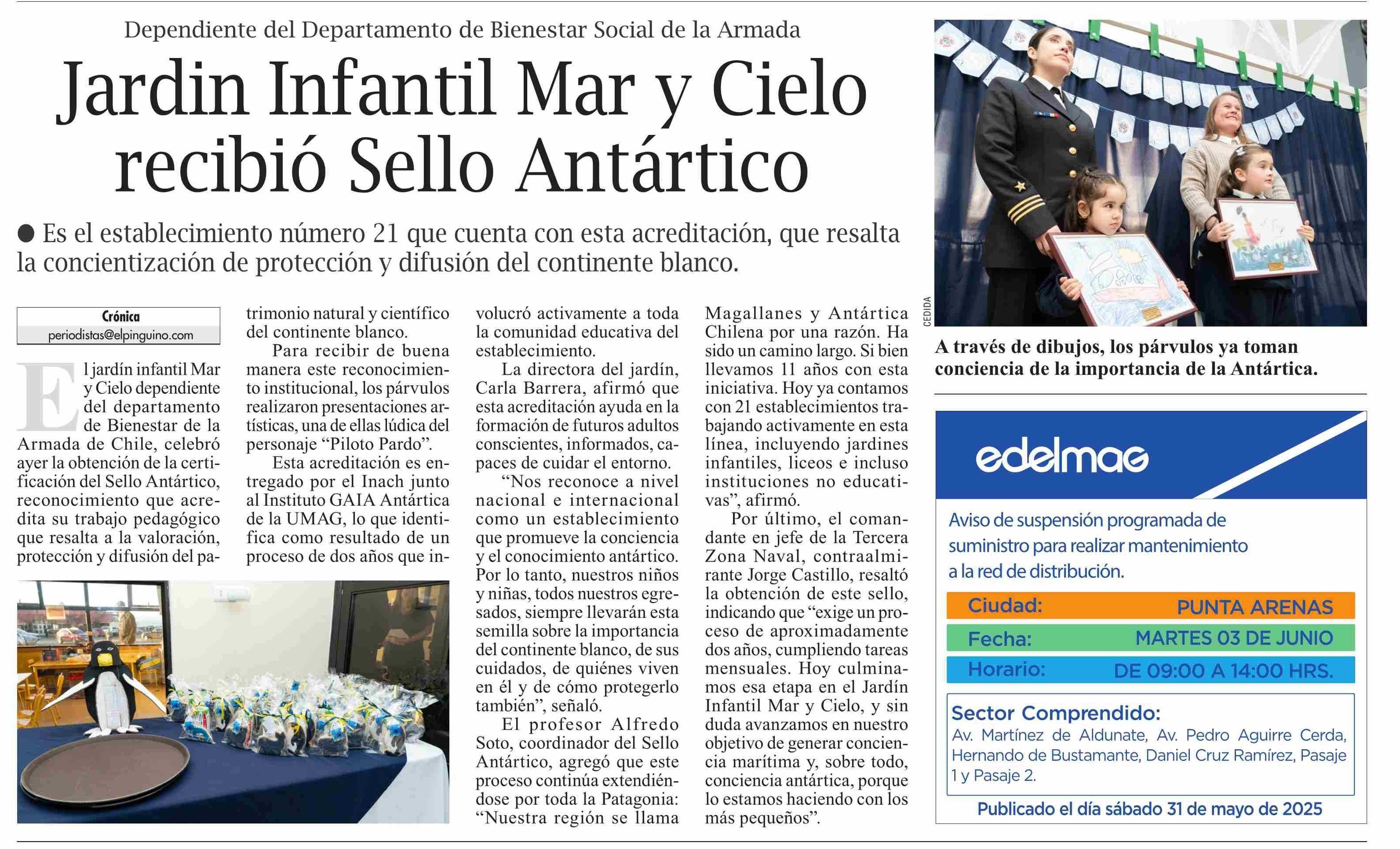| Fecha: | 31-05-2025 | Sector: | Noticia general | Región: | Región de Magallanes y de la Antártica Chilena |