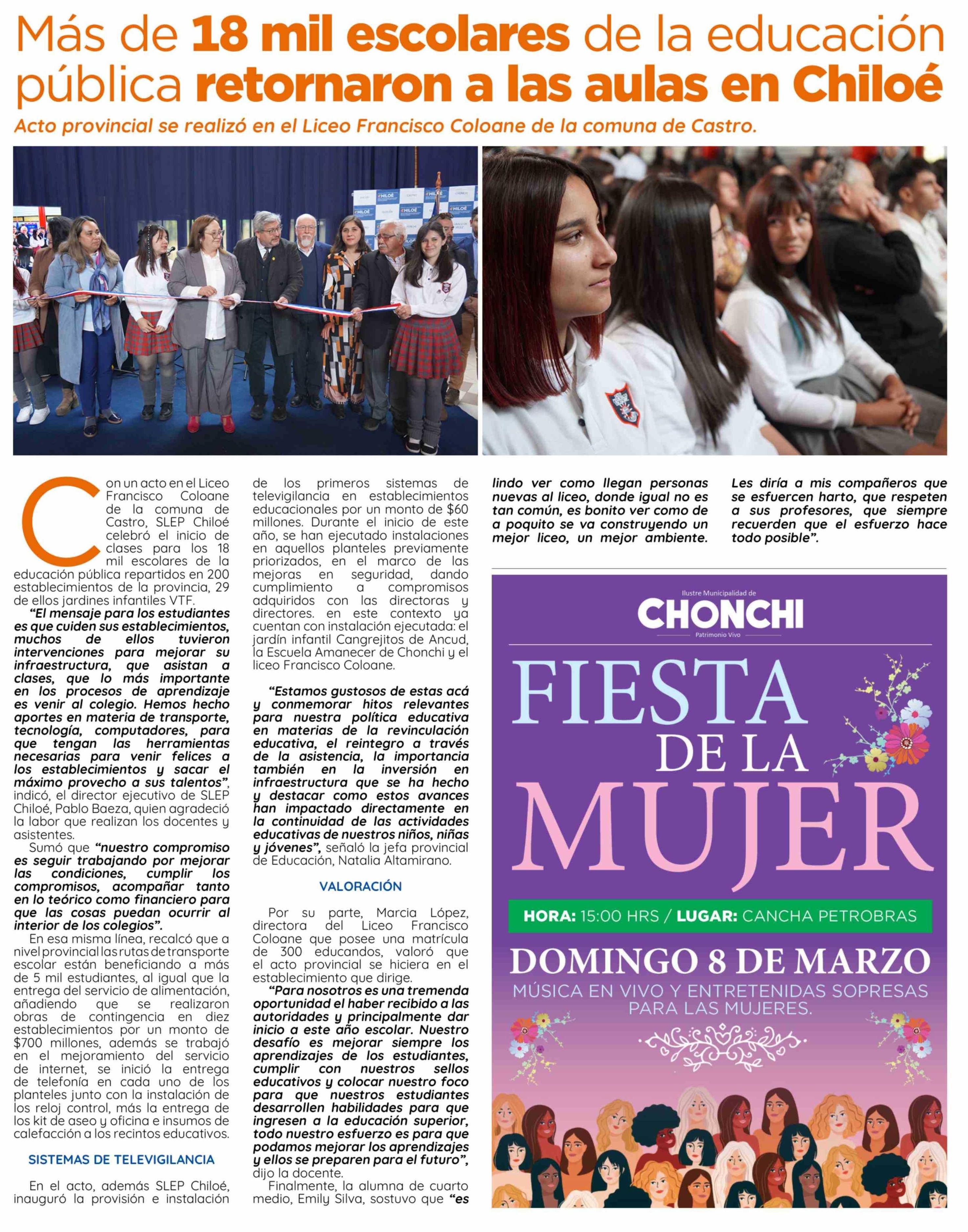 Más de 18 mil escolares de la educación pública retornaron a las aulas en Chiloé 05-03-2026 El Insular |