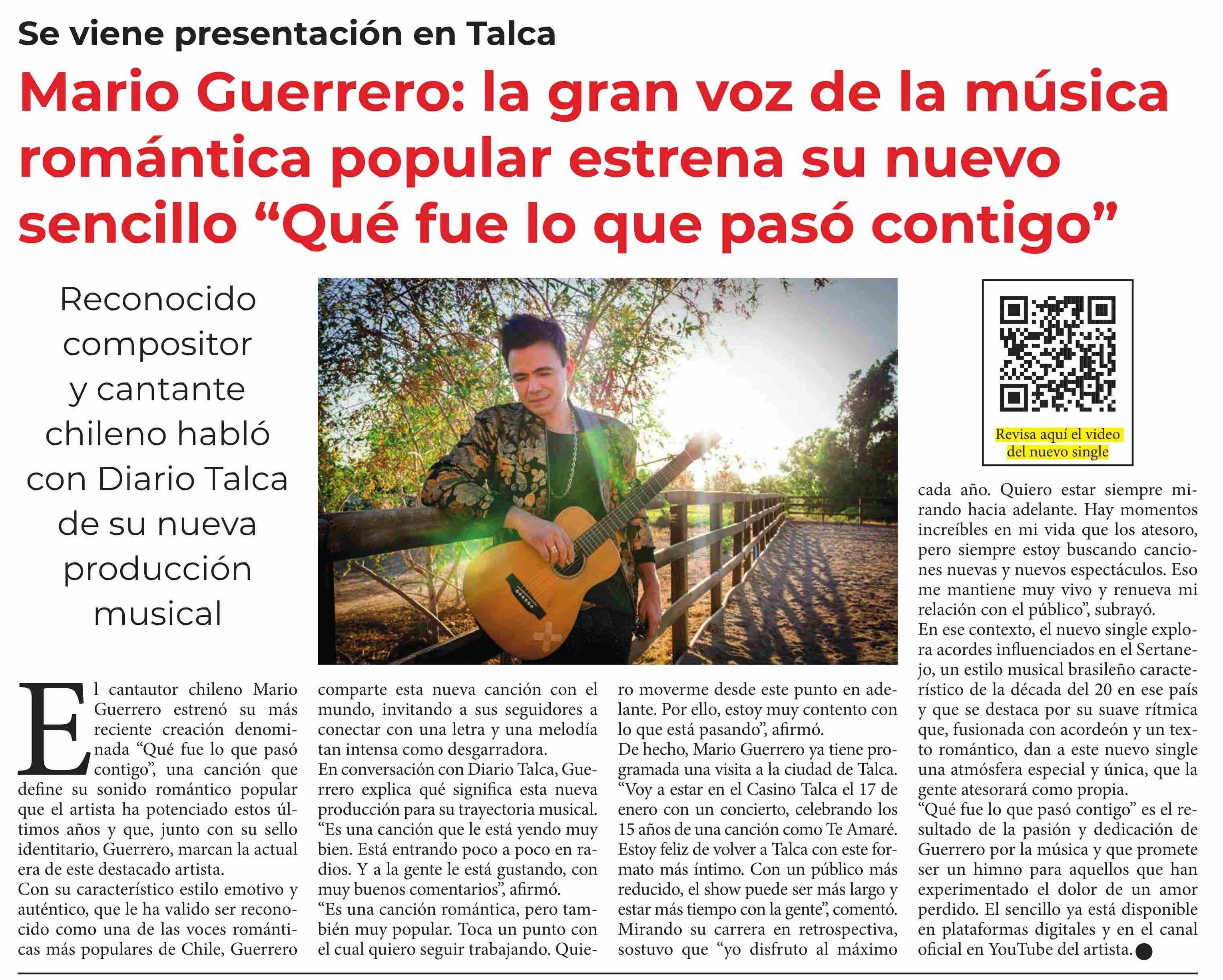 Título: Mario Guerrero: la gran voz de la música romántica popular estrena su nuevo sencillo "Qué fue lo que pasó contigo"