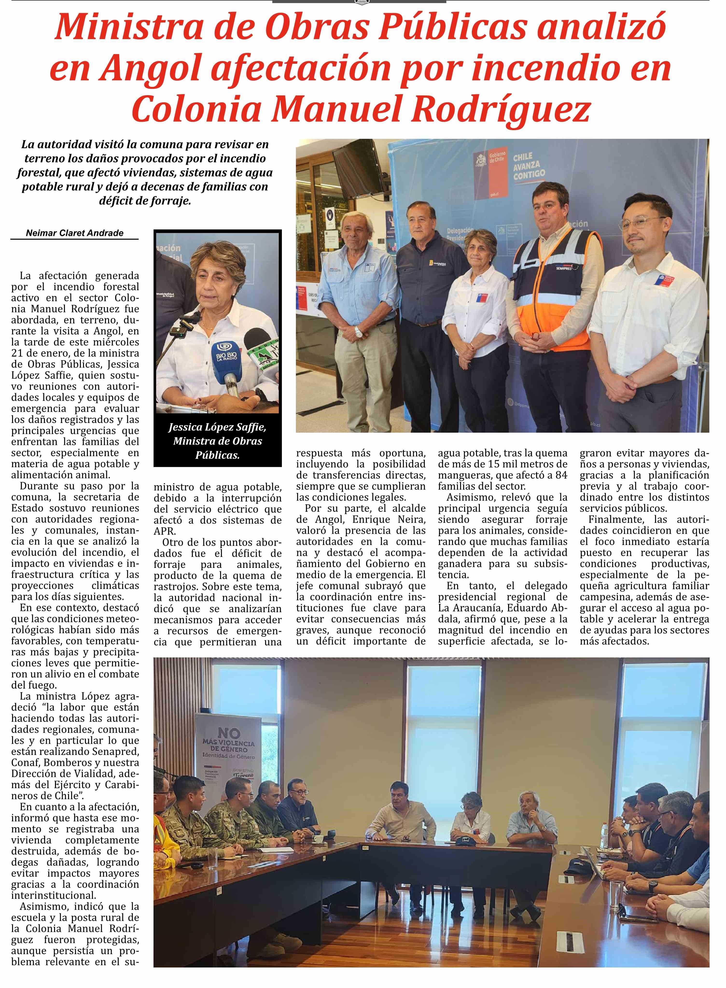 Título: Ministra de Obras Públicas analizó en Angol afectación por incendio en Colonia Manuel Rodríguez