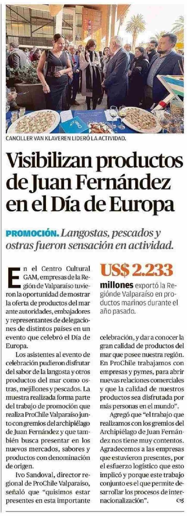 Visibilizan productos de Juan Fernández en el Día de Europa 26-05-2025 El Mercurio de Valparaíso |