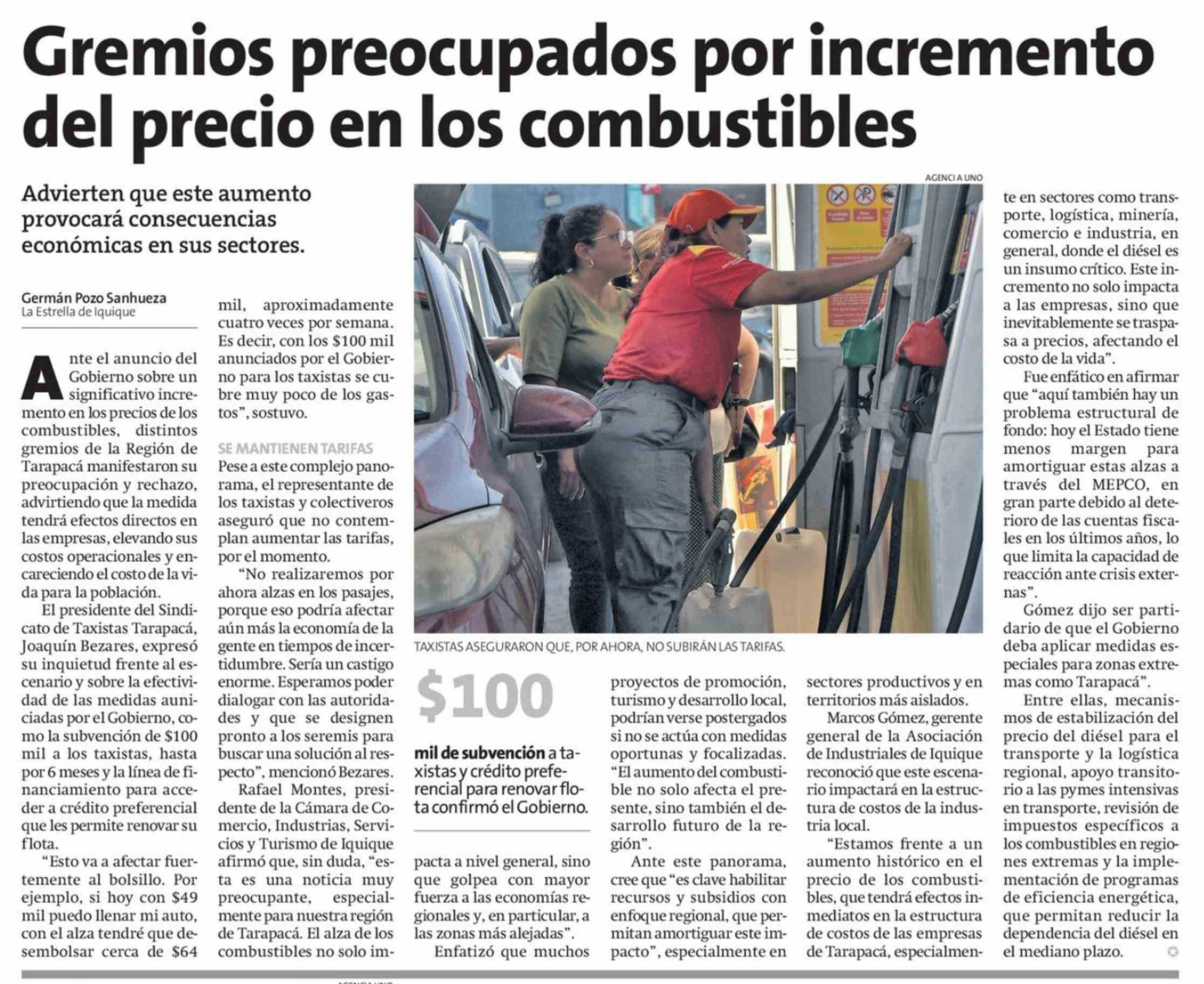 Título: Gremios preocupados por incremento del precio en los combustibles