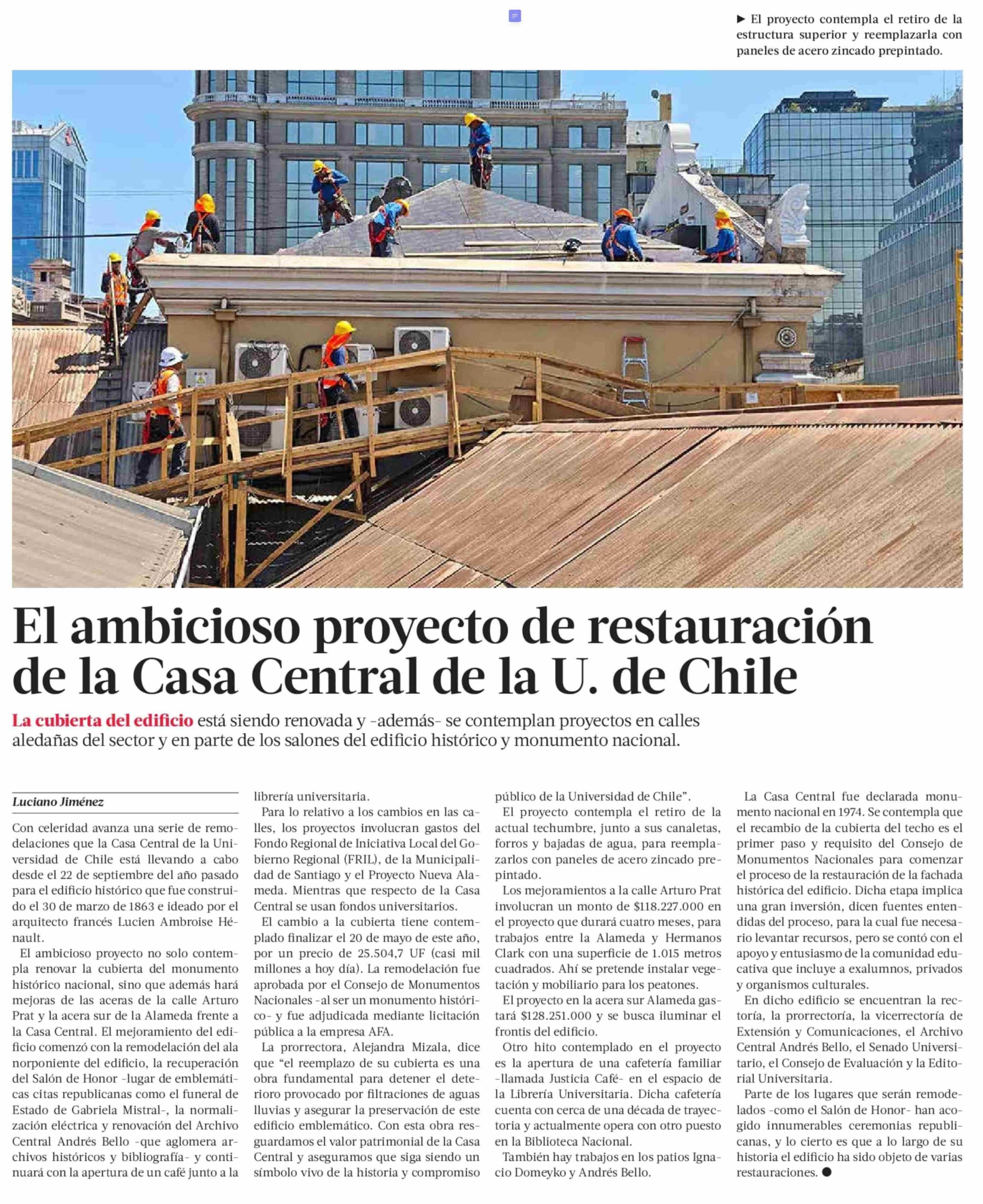 Título: El ambicioso proyecto de restauración de la Casa Central de la U. de Chile