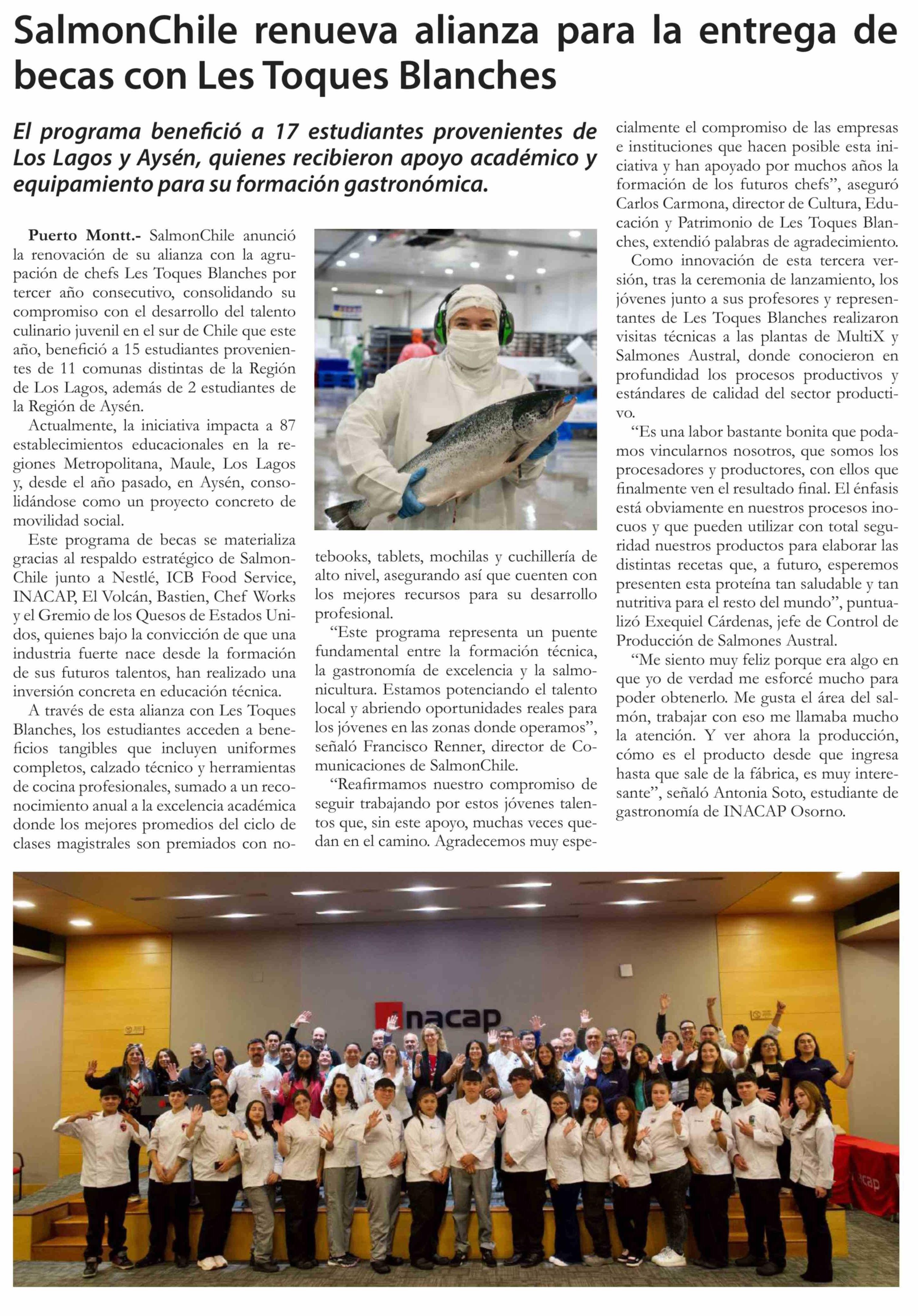 Título: SalmonChile renueva alianza para la entrega de becas con Les Toques Blanches