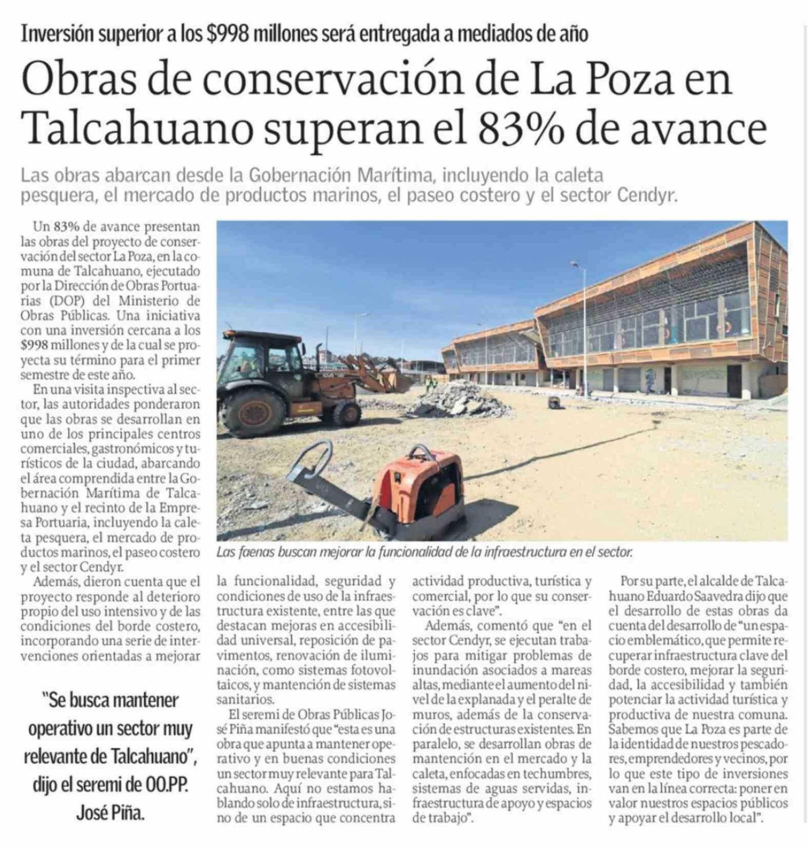 | Título: | Obras de conservación de La Poza en Talcahuano superan el 83% de avance |