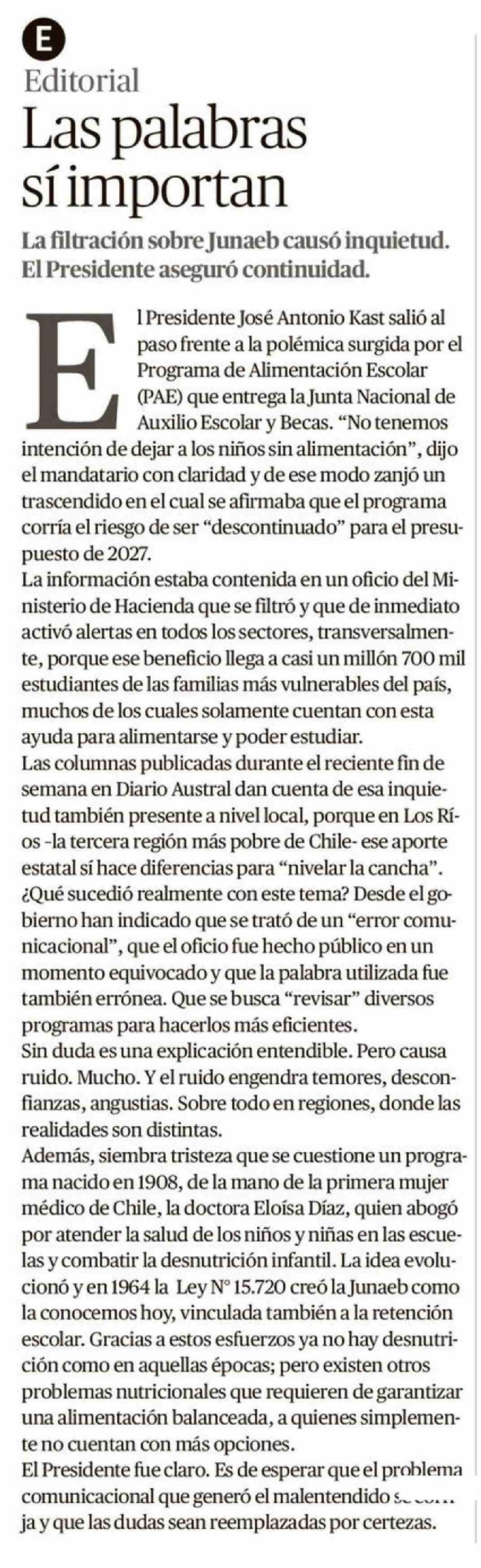 Fecha: 28-04-2026 Sector: Editorial Región: Región de Los Ríos