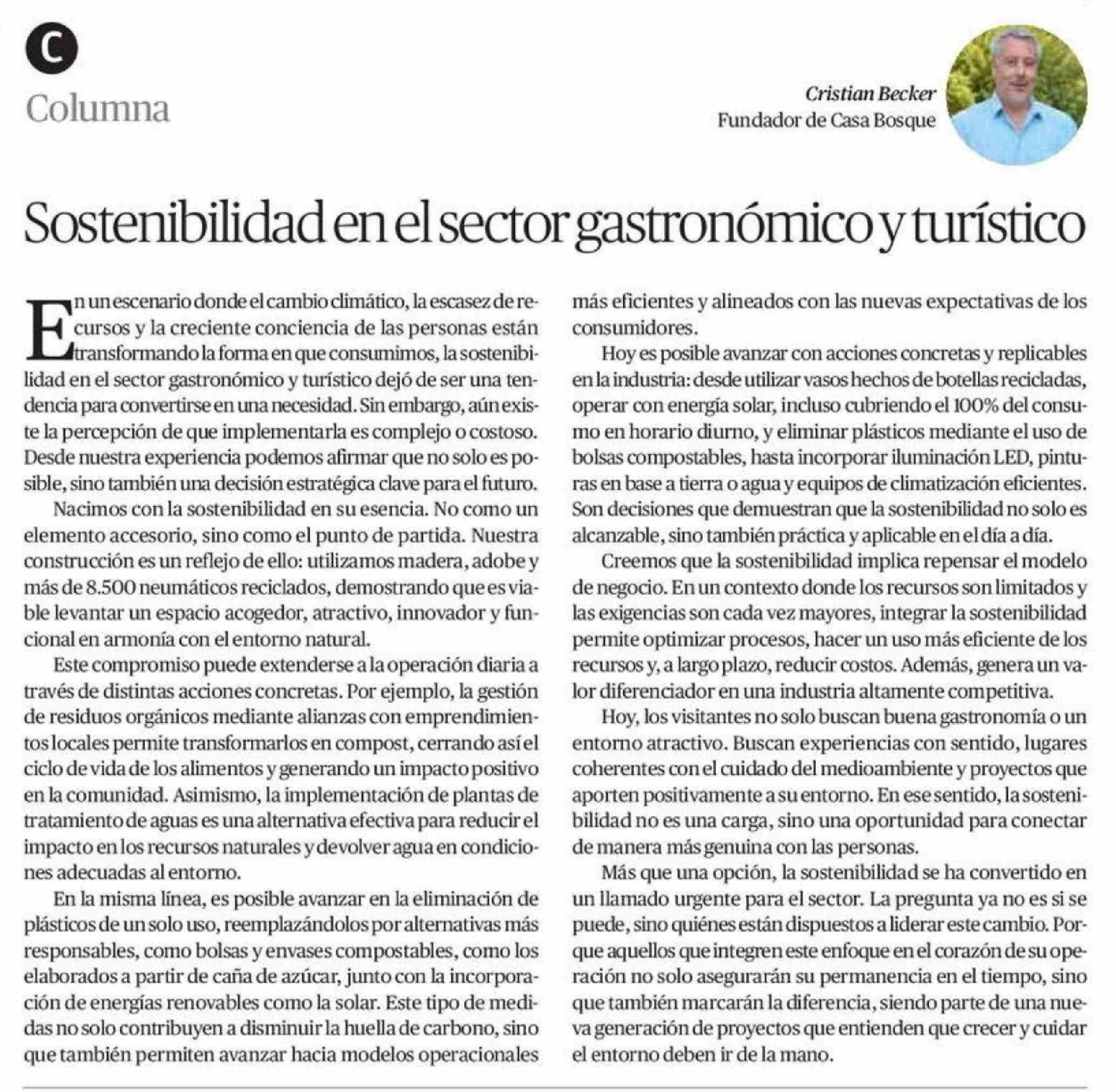Título: Columnas de Opinión: Sostenibilidad en el sector gastronómico y turístico