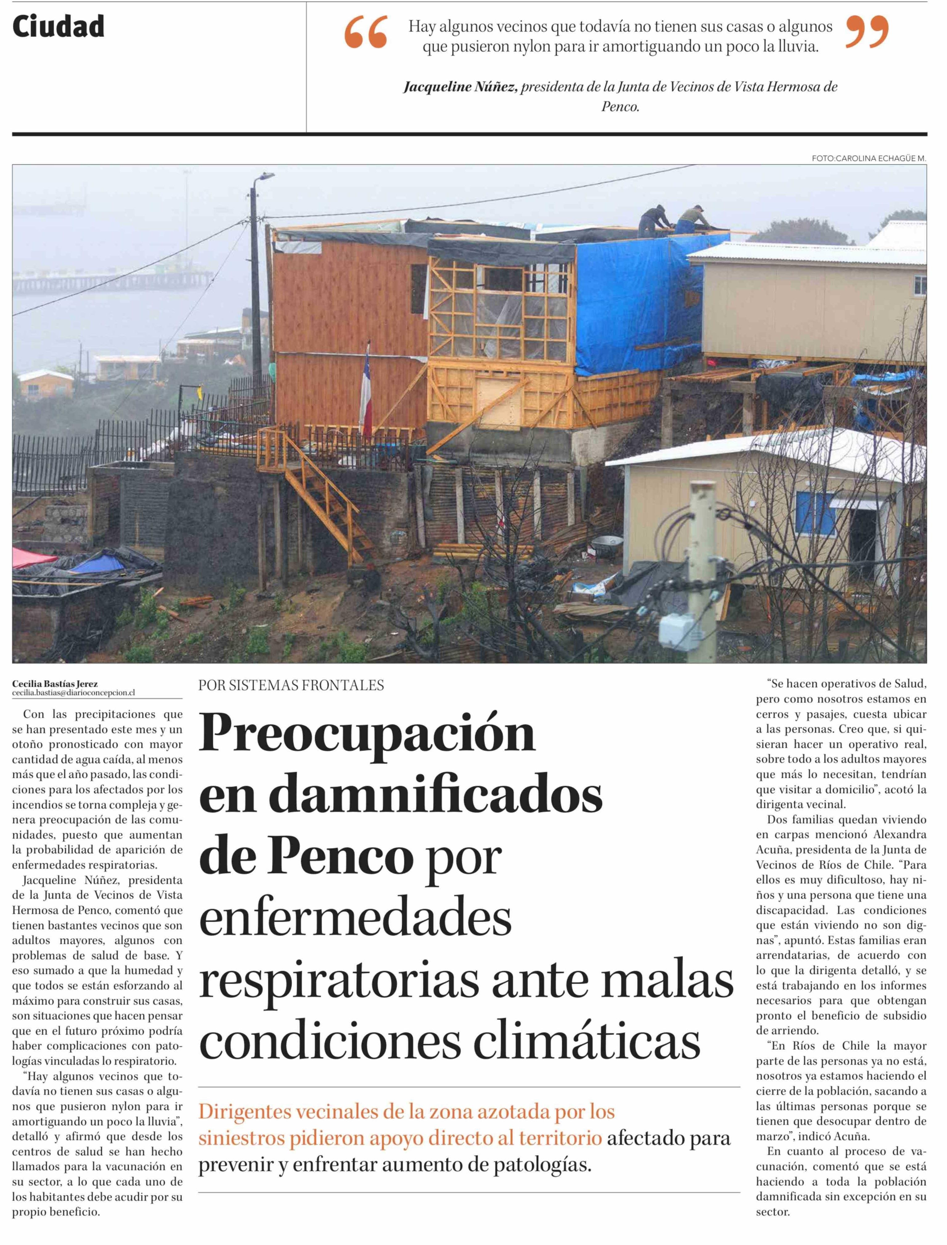 Título: Preocupación en damnificados de Penco por enfermedades respiratorias ante malas condiciones climáticas