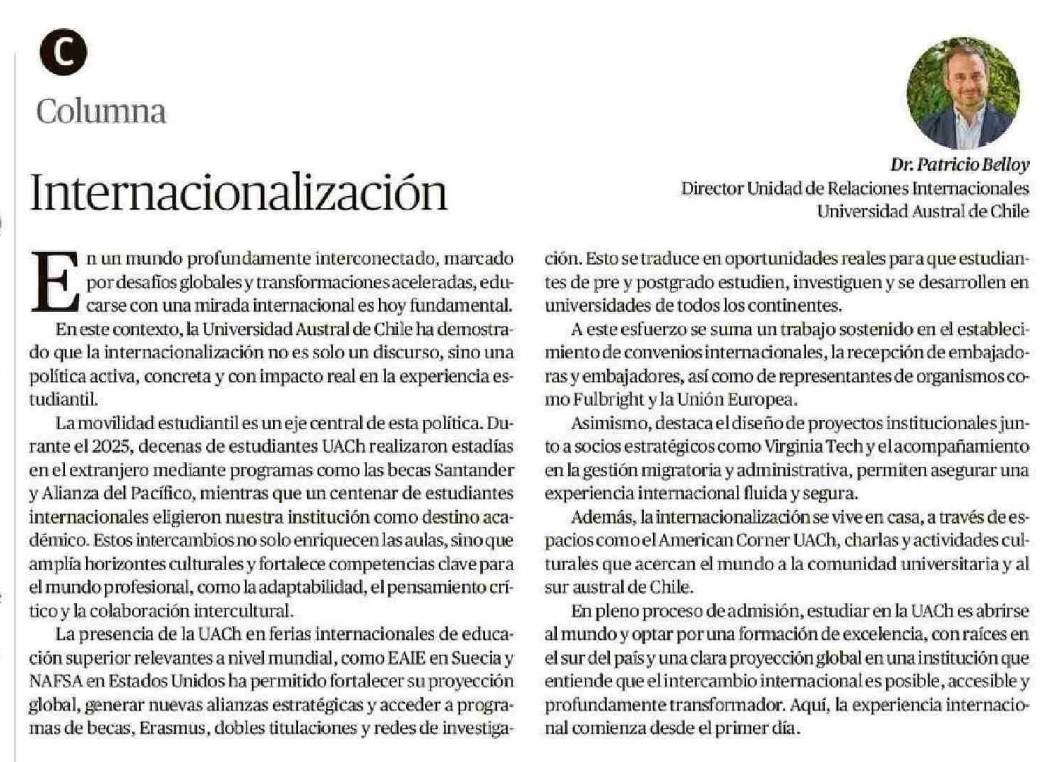 Columnas de Opinión: Internacionalización 22-01-2026 Diario Austral Región de Los Ríos |
