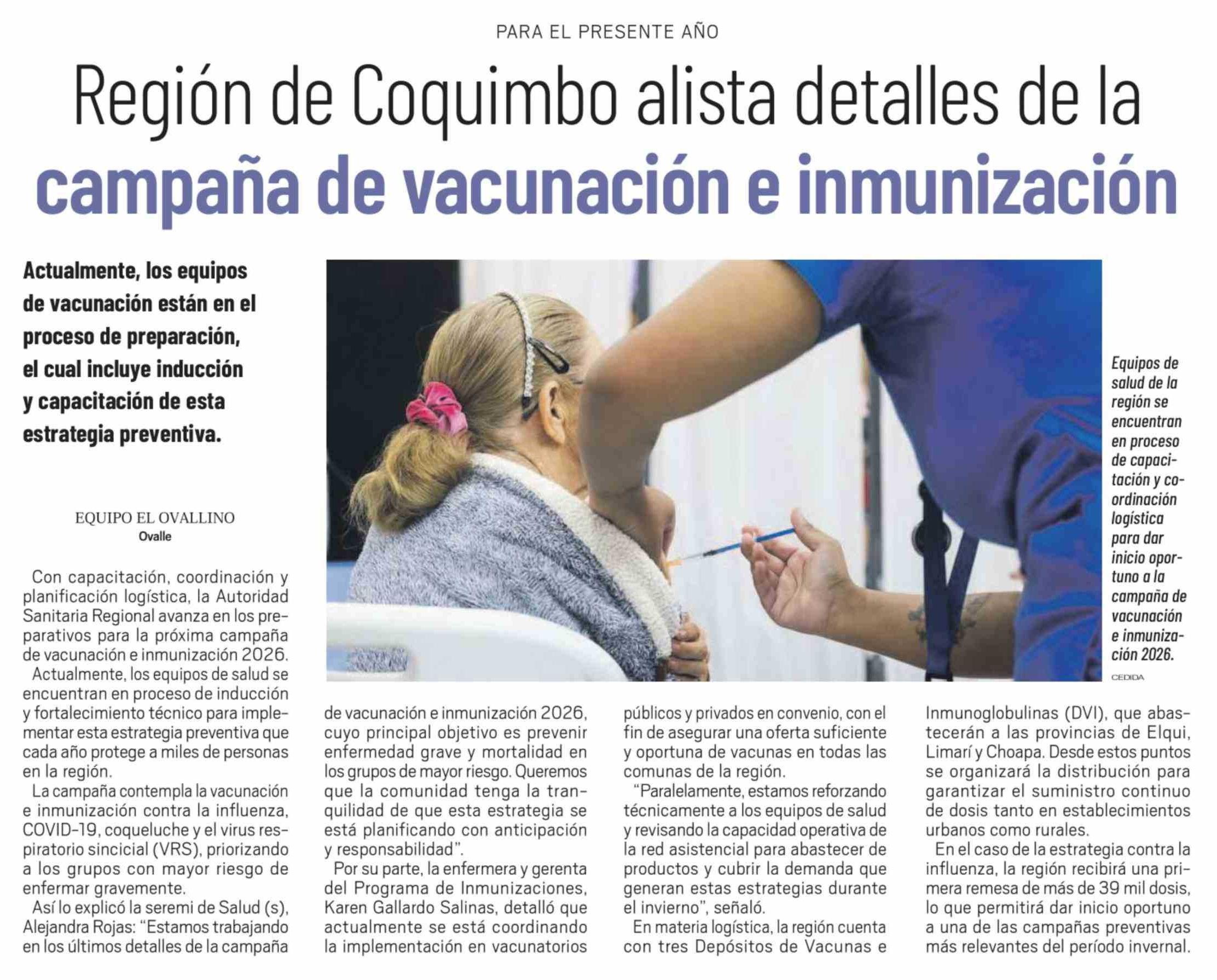 Región de Coquimbo alista detalles de la campaña de vacunación e inmunización 21-02-2026 El Ovallino |