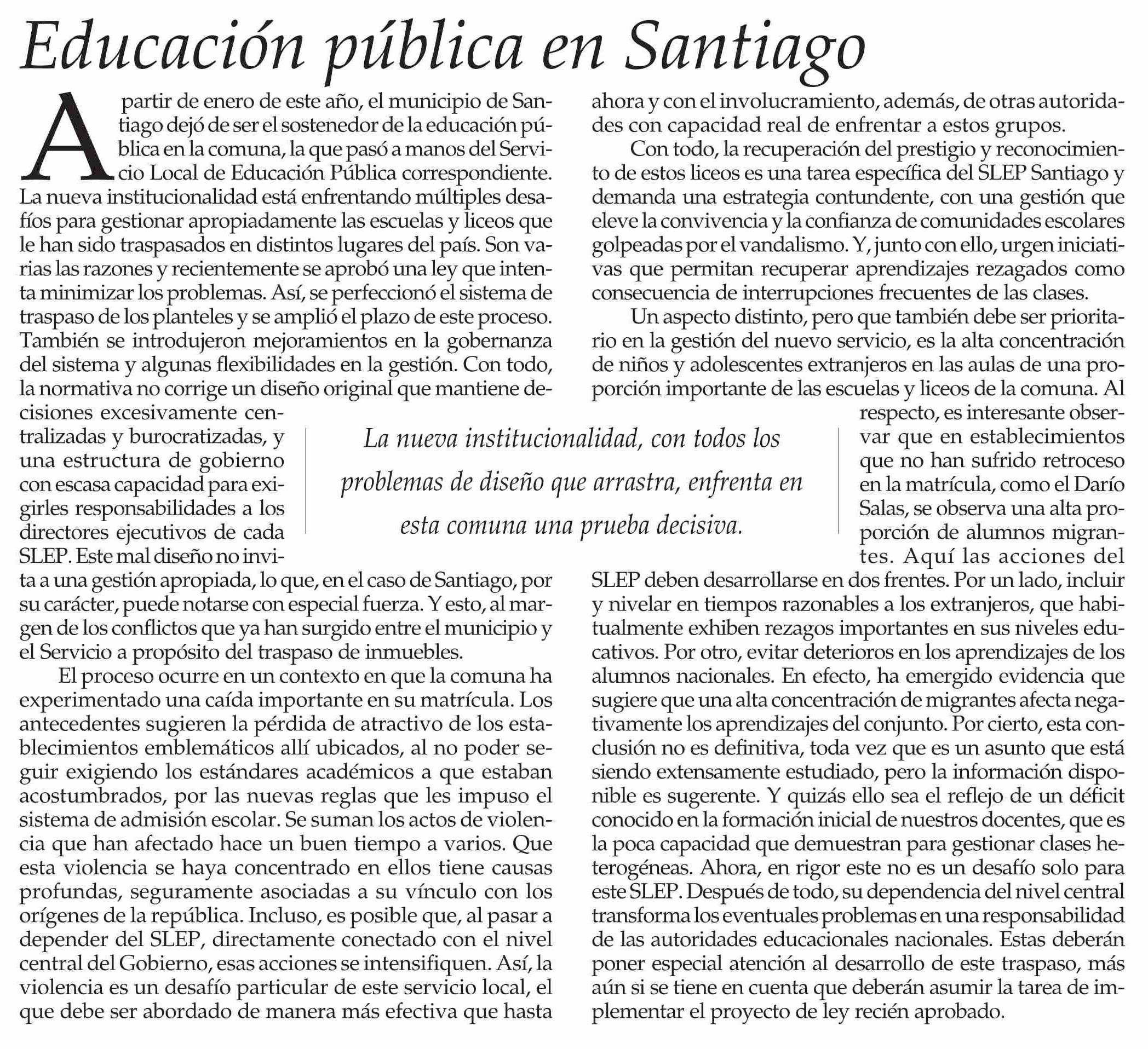 Editorial: Educación pública en Santiago 11-02-2026 El Mercurio |