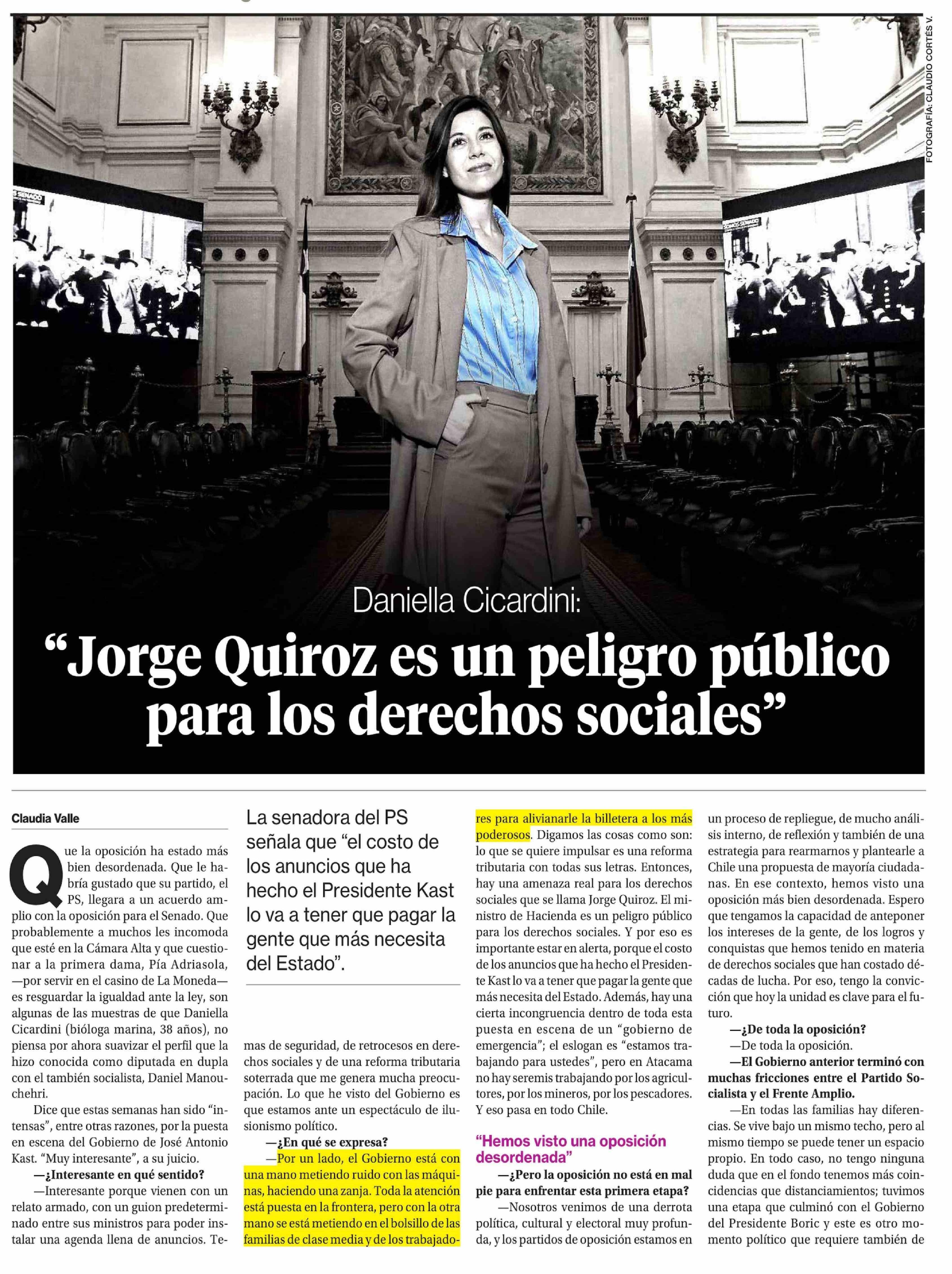 Título: "Jorge Quiroz es un peligro público para los derechos sociales"