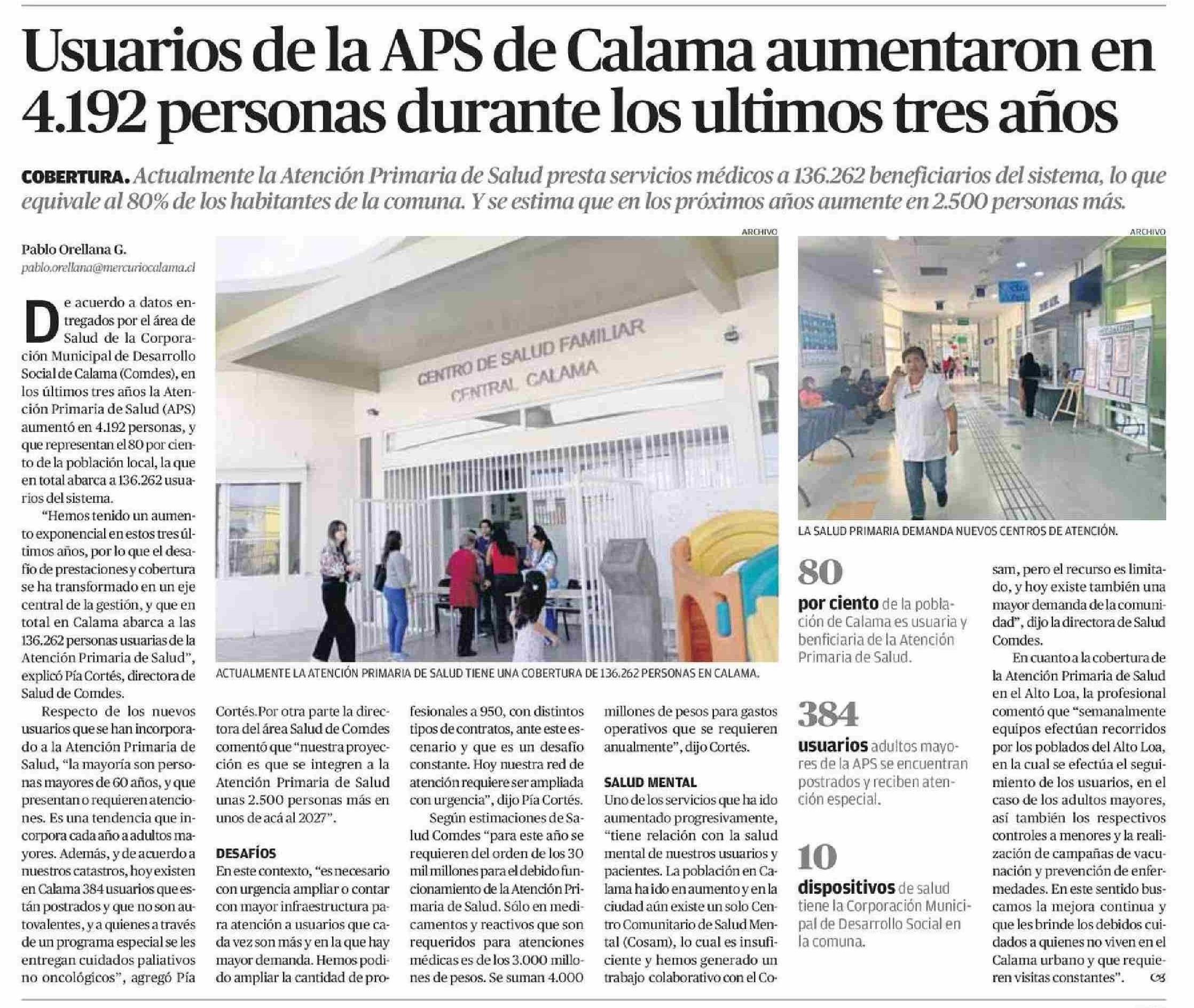 Usuarios de la APS de Calama aumentaron en 4.192 personas durante los ultimos tres años 08-01-2026 El Mercurio de Calama |