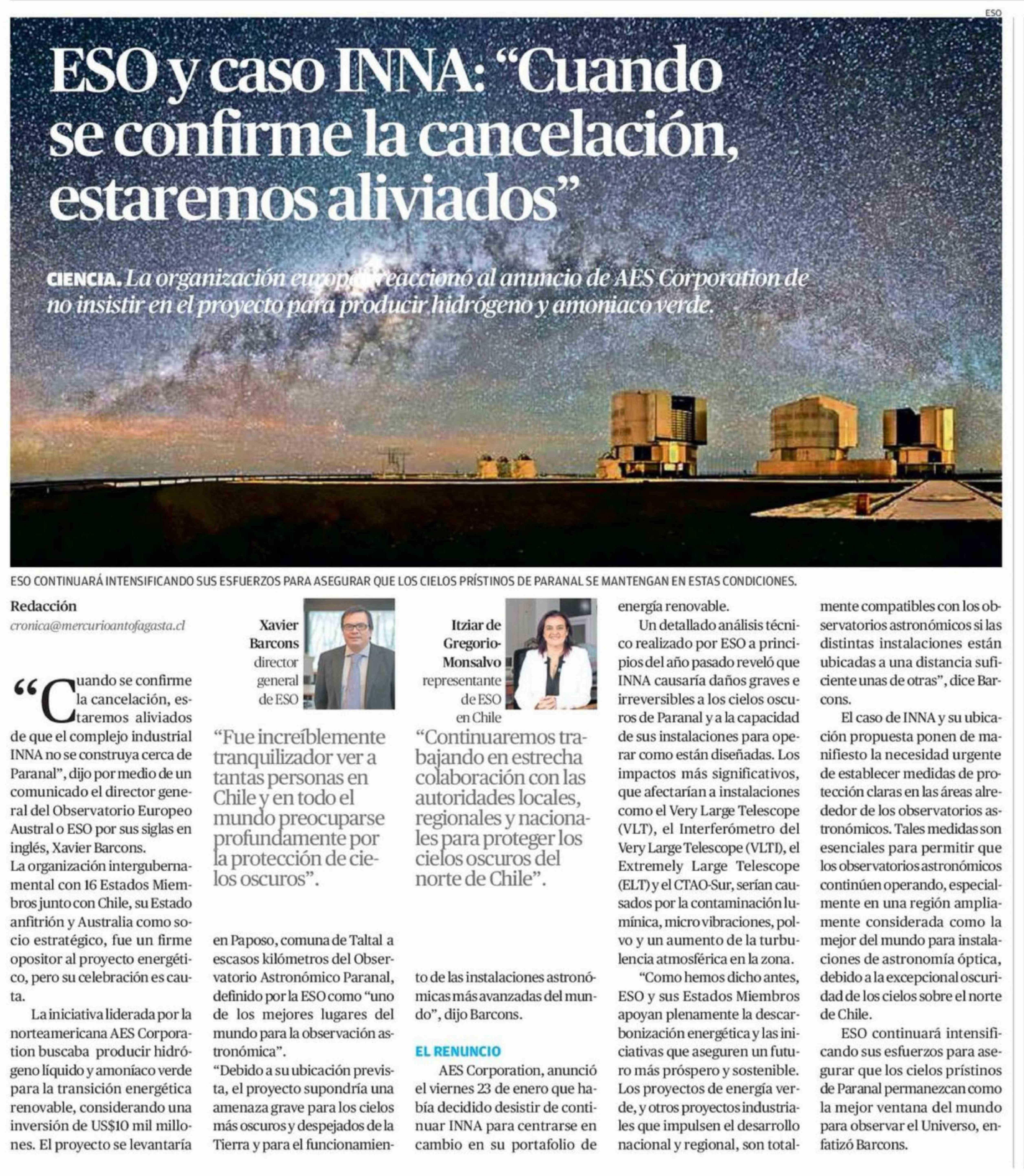 ESO y caso INNA: "Cuando se confirme la cancelación, estaremos aliviados"