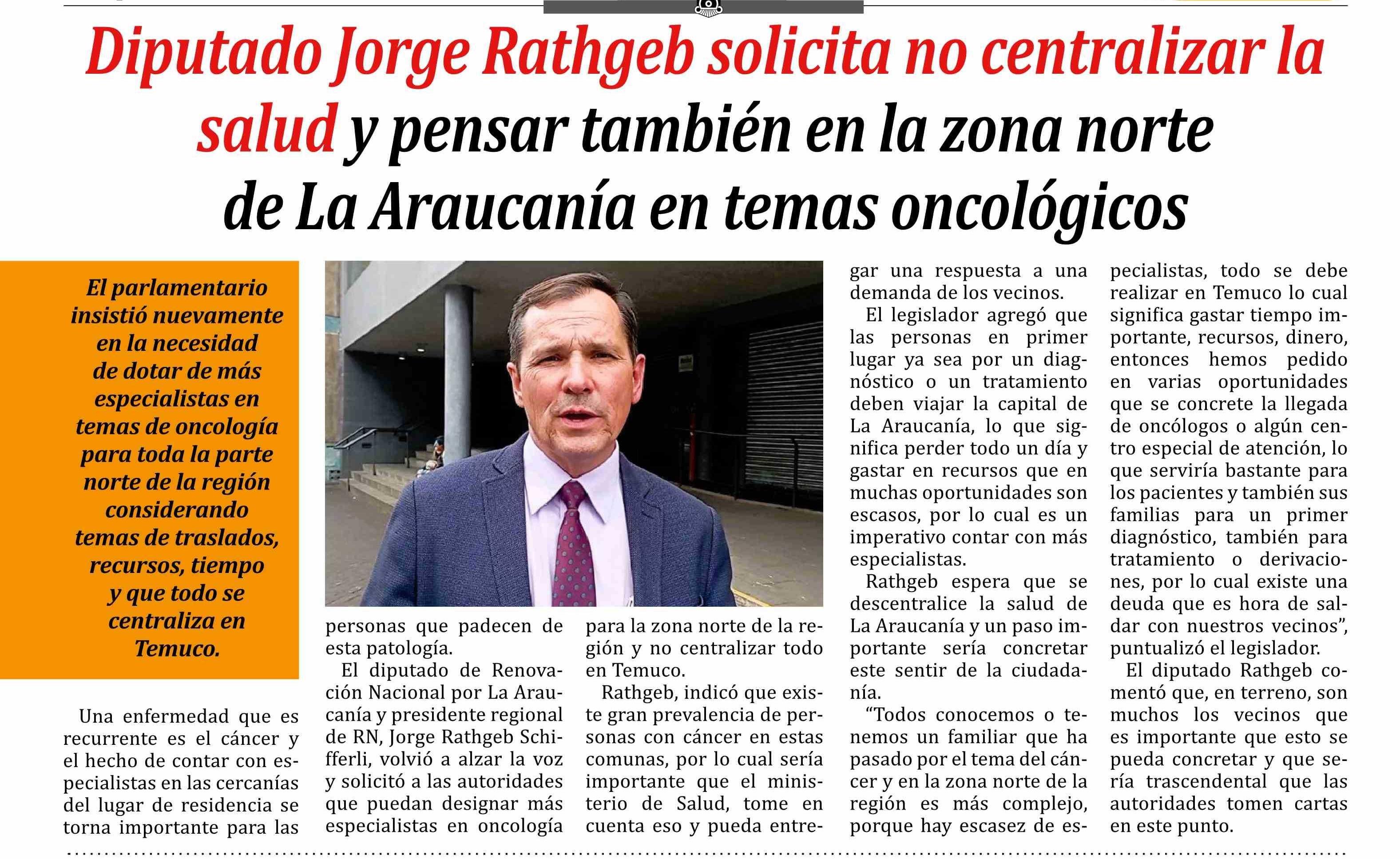 Diputado Jorge Rathgeb solicita no centralizar la salud y pensar también en la zona norte de La Araucanía en temas oncológicos 27-05-2025 Las Noticias |