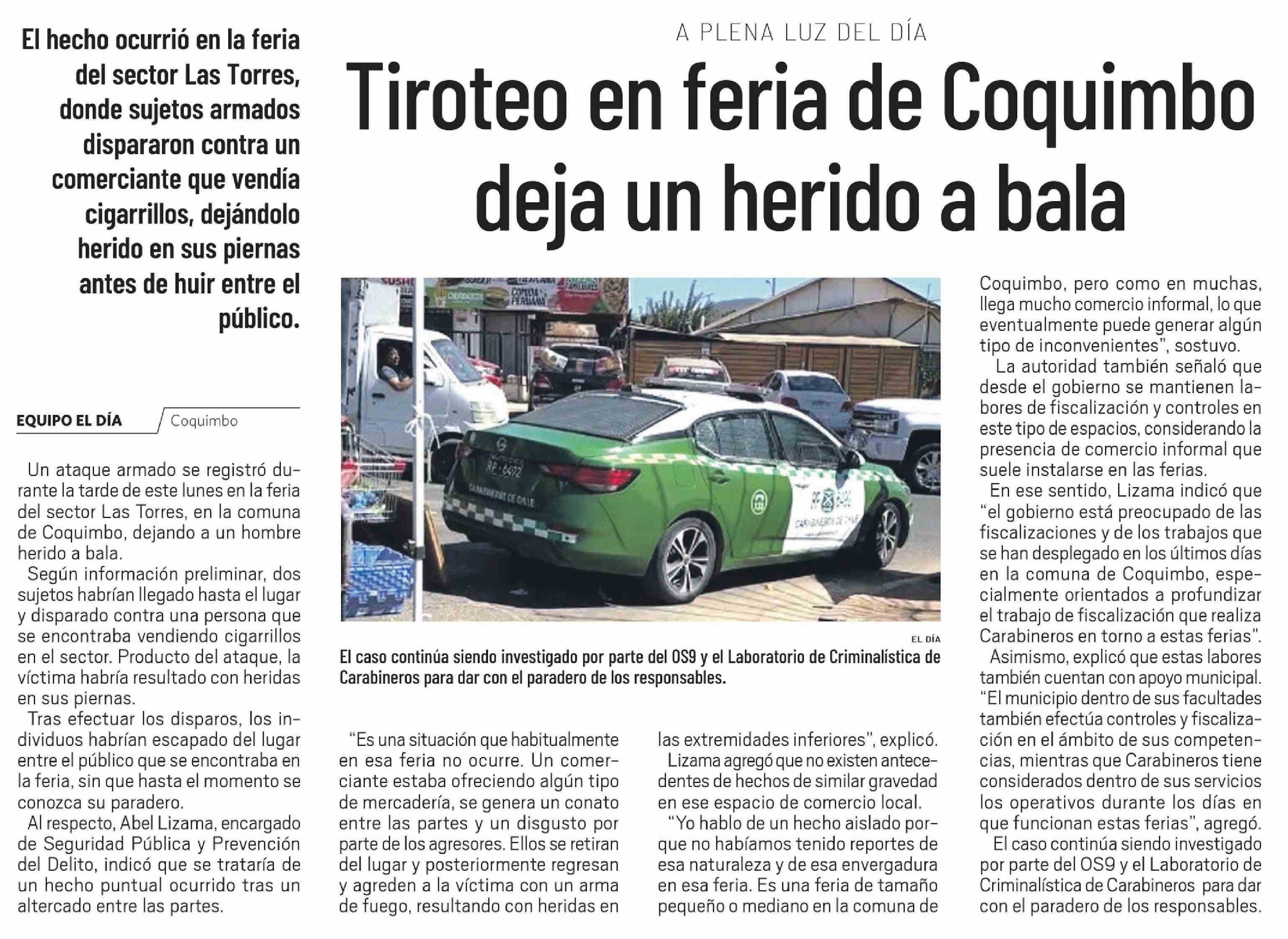 Tiroteo en feria de Coquimbo deja un herido a bala 24-03-2026 El Día |