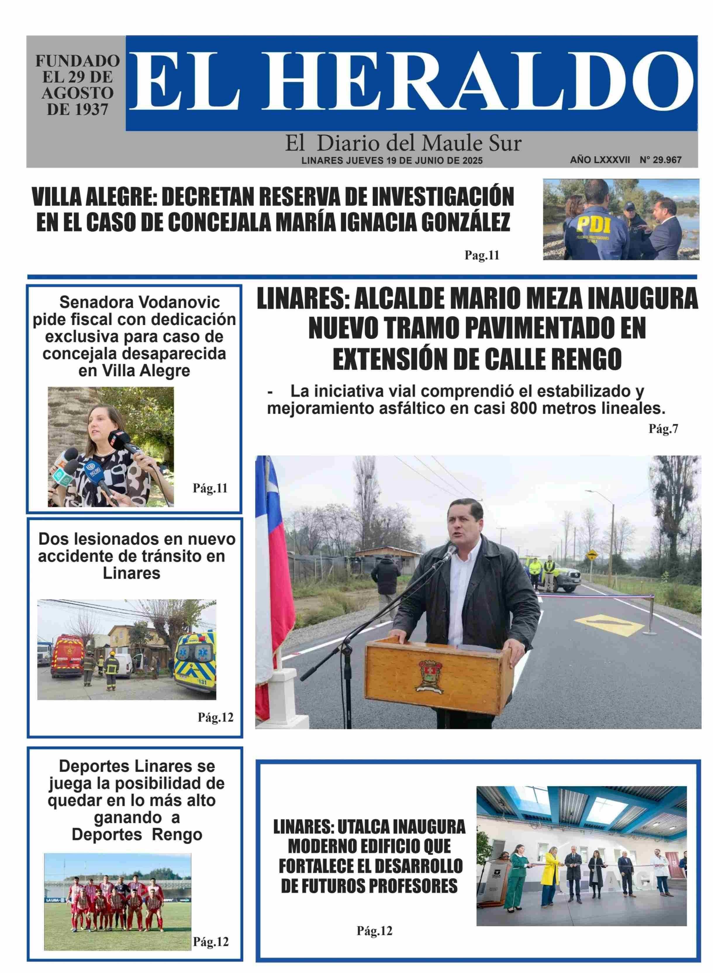 PORTADA EL HERALDO DE LINARES CHILE 19-06-2025 El Heraldo |