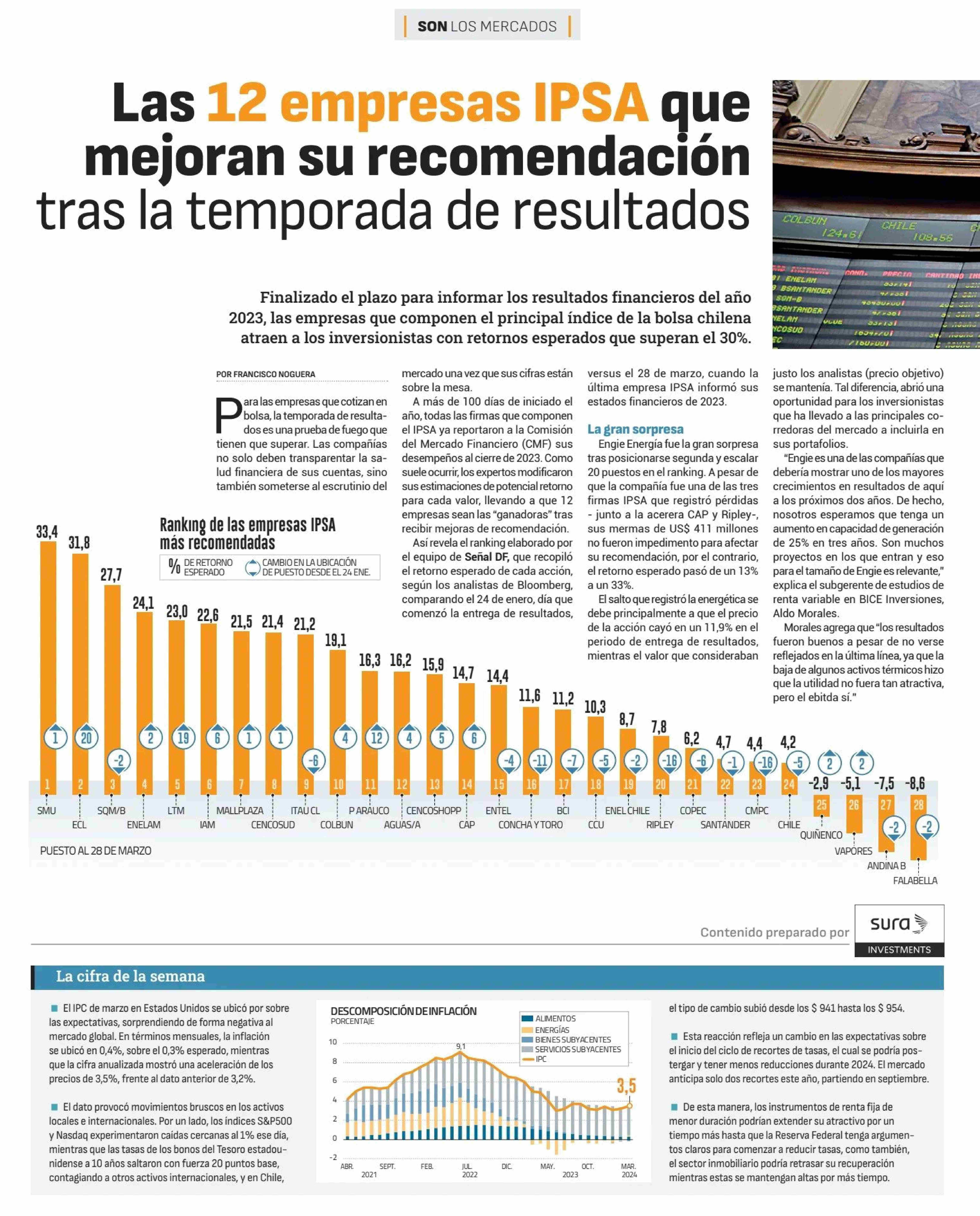 Las 12 empresas IPSA que mejoran su recomendación tras la temporada de resultados 13-04-2024 Diario Financiero |
