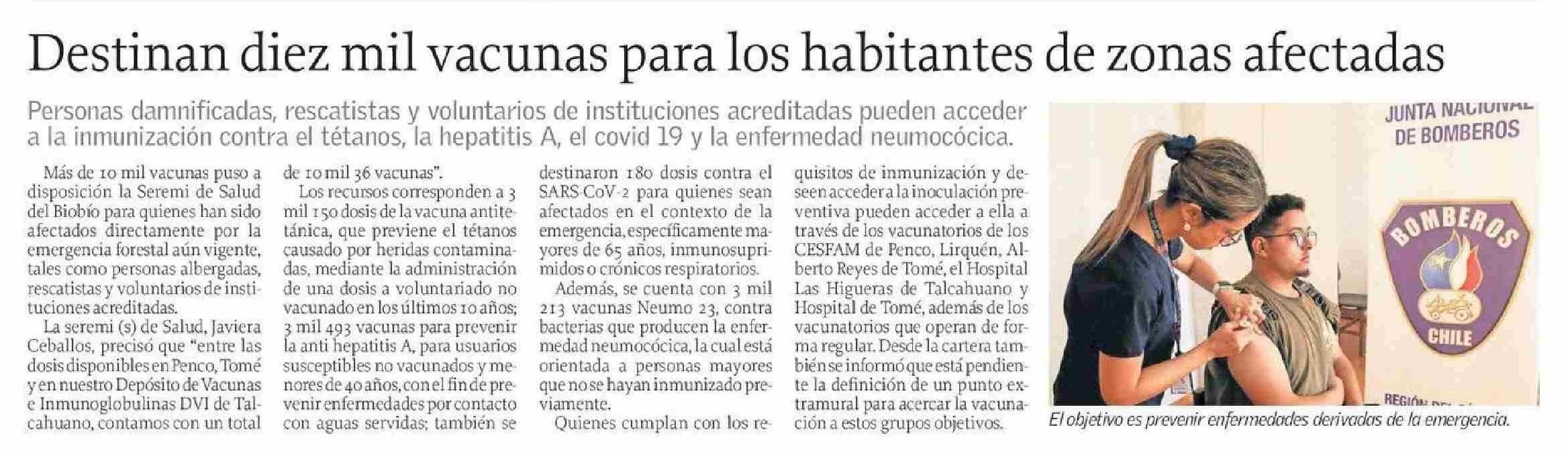 | Título: | Destinan diez mil vacunas para los habitantes de zonas afectadas |