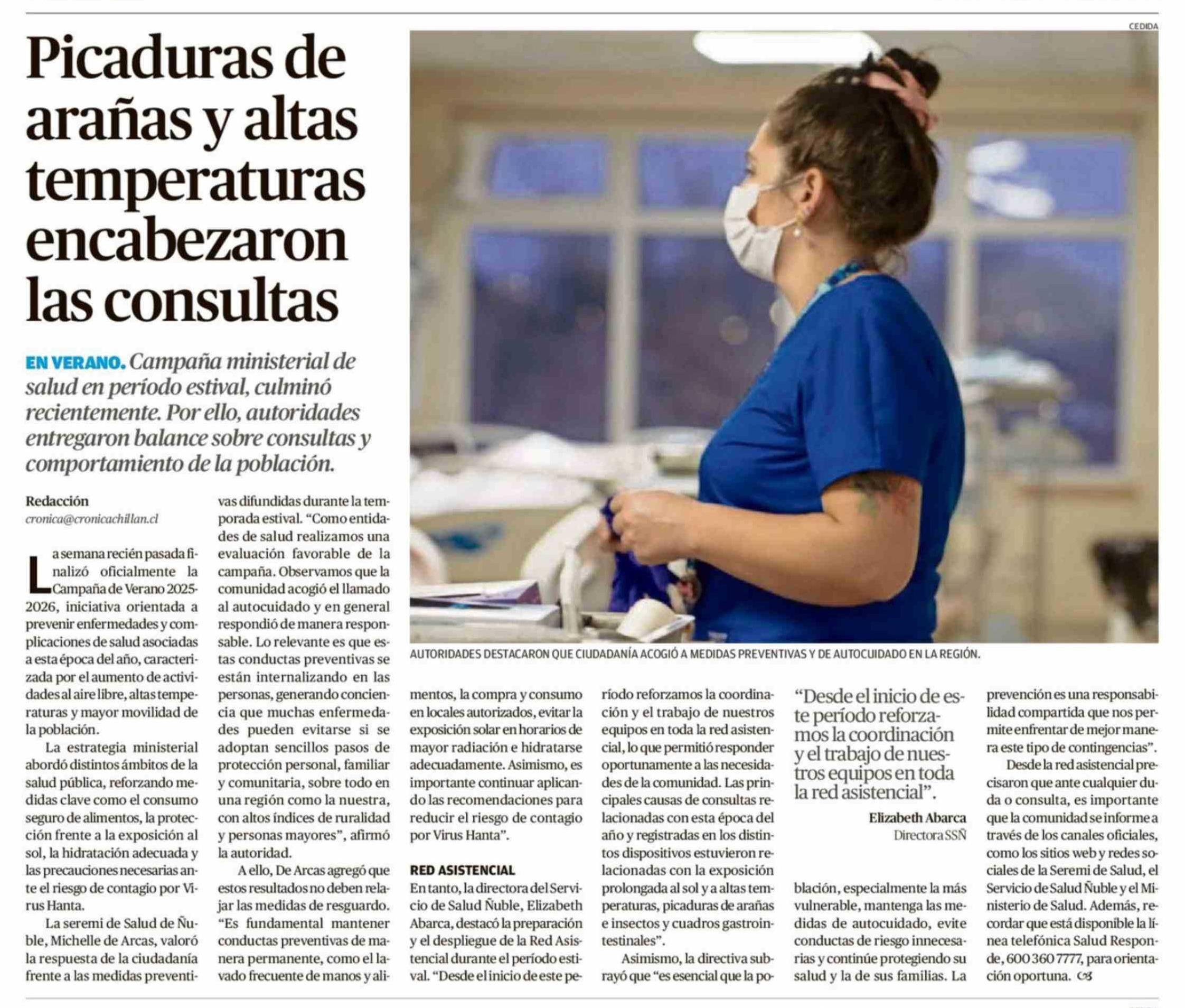Picaduras de arañas y altas temperaturas encabezaron las consultas 02-03-2026 Crónica de Chillán |