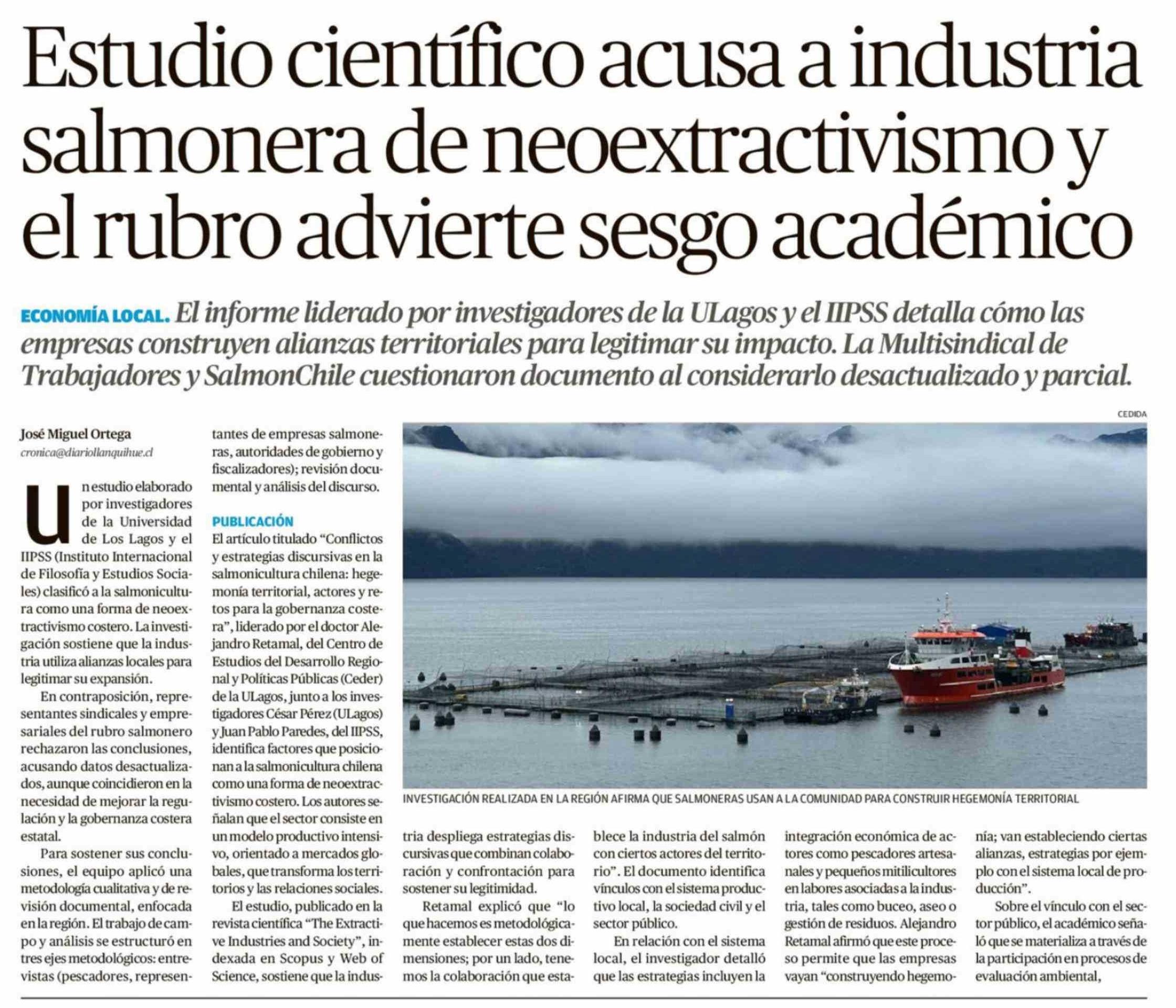 | Título: | Estudio científico acusa a industria salmonera de neoextractivismo y el rubro advierte sesgo académico |