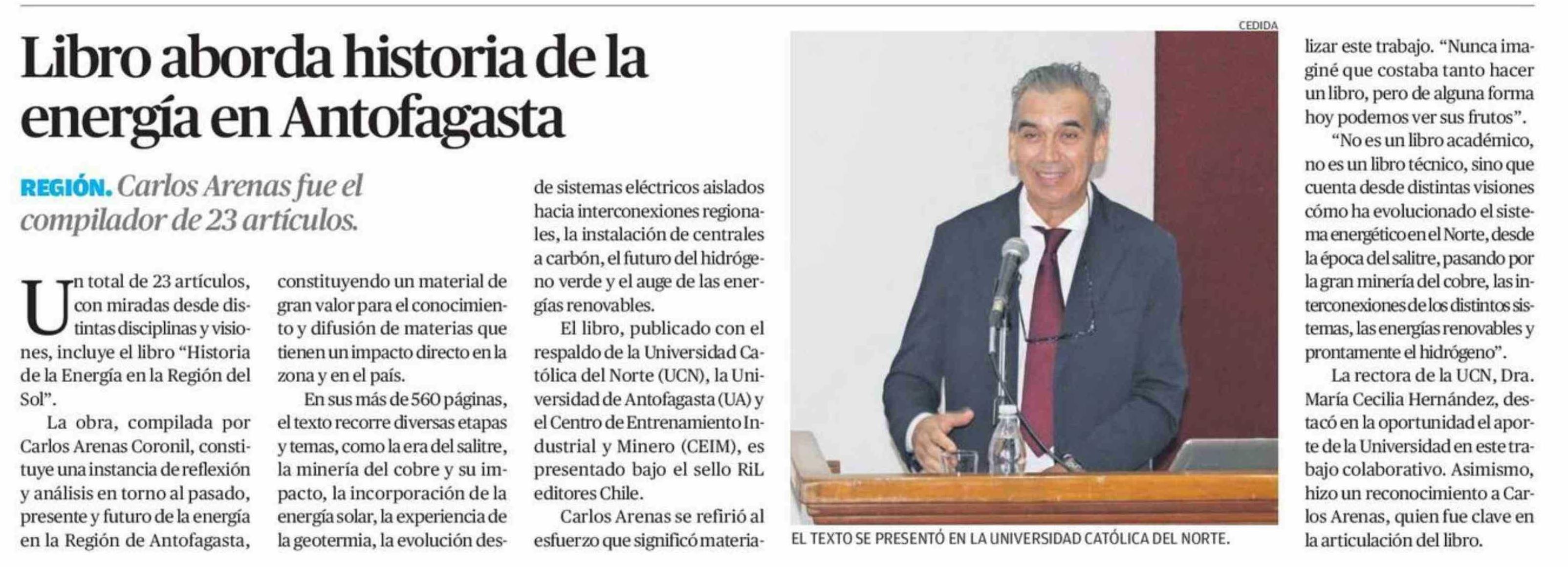 Libro aborda historia de la energía en Antofagasta 23-01-2026 El Mercurio de Antofagasta |