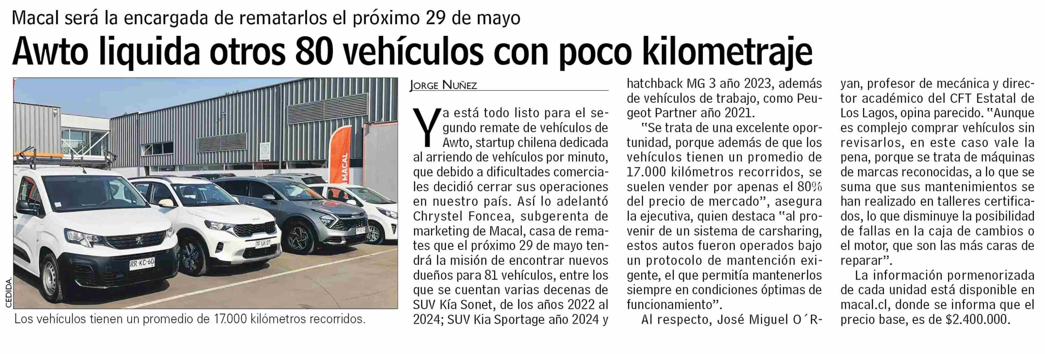 | Título: | Awto liquida otros 80 vehículos con poco kilometraje |