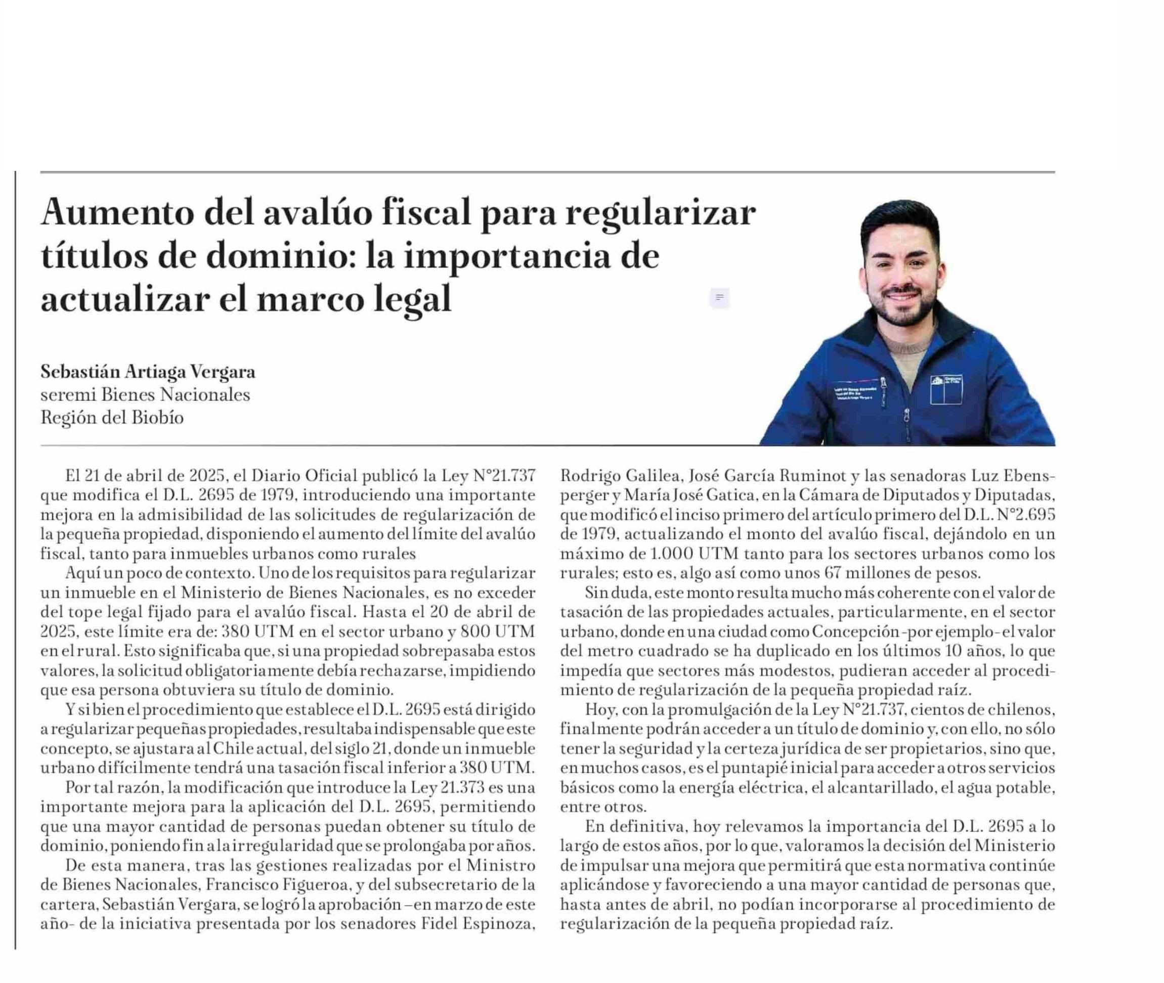 | Título: | Aumento del avalúo fiscal para regularizar títulos de dominio: la importancia de actualizar el marco legal |