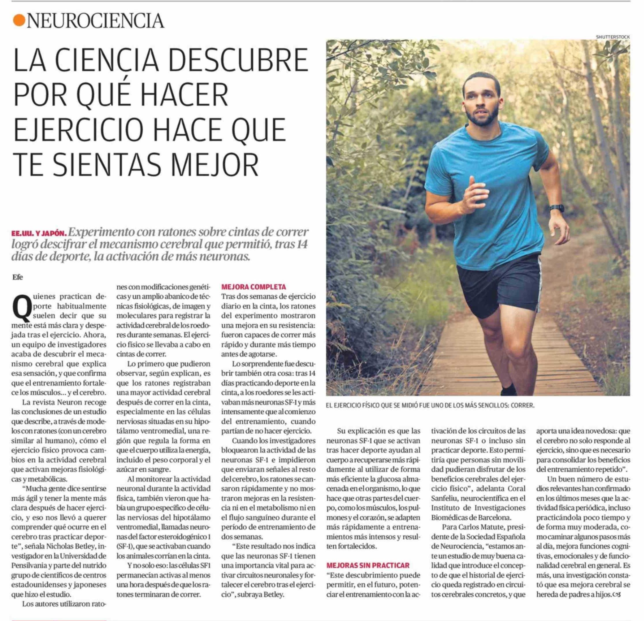 LA CIENCIA DESCUBRE POR QUÉ HACER EJERCICIO HACE QUE TE SIENTAS MEJOR 22-02-2026 Diario Austral Región de Los Ríos |