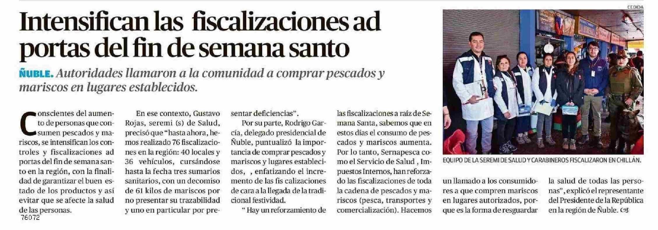 Intensifican las fiscalizaciones ad portas del fin de semana santo 17-04-2025 Crónica de Chillán |