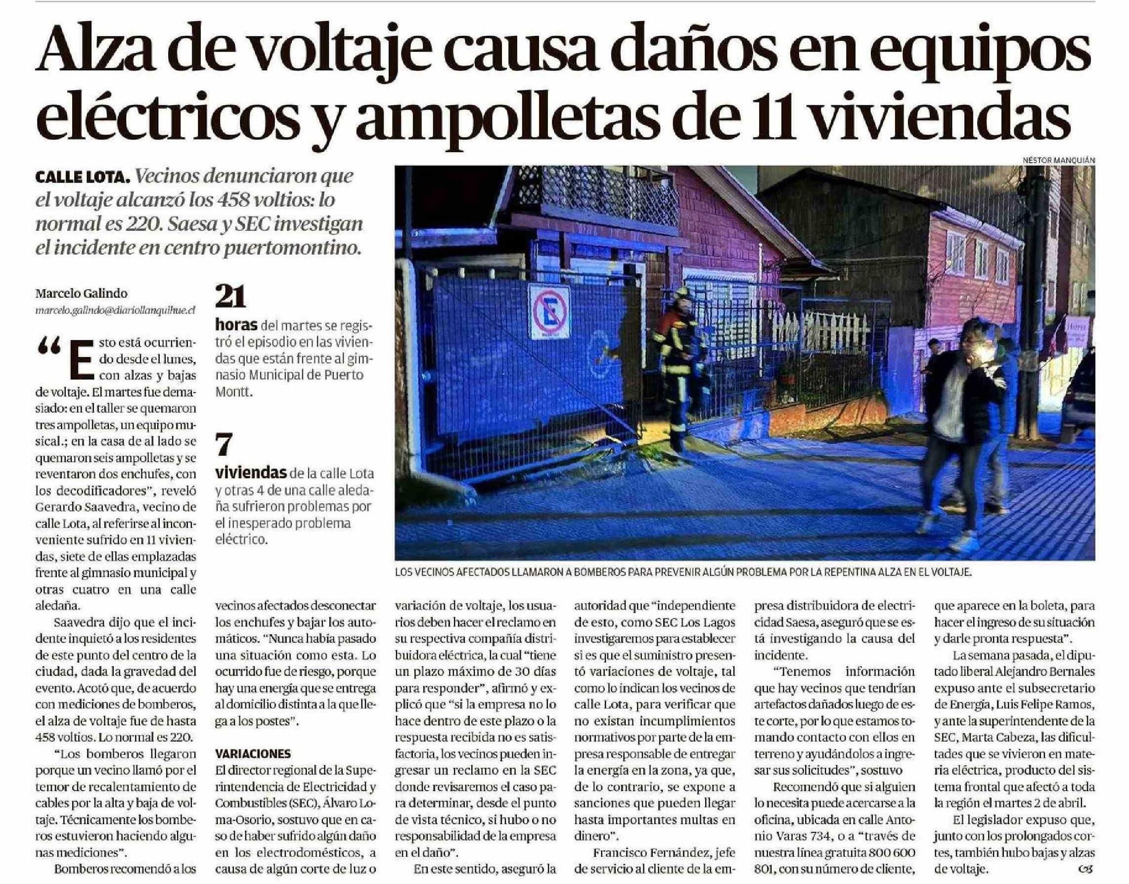 Alza de voltaje causa daños en equipos eléctiicos y ampolletas de 11 viviendas 18-04-2024 El Llanquihue |