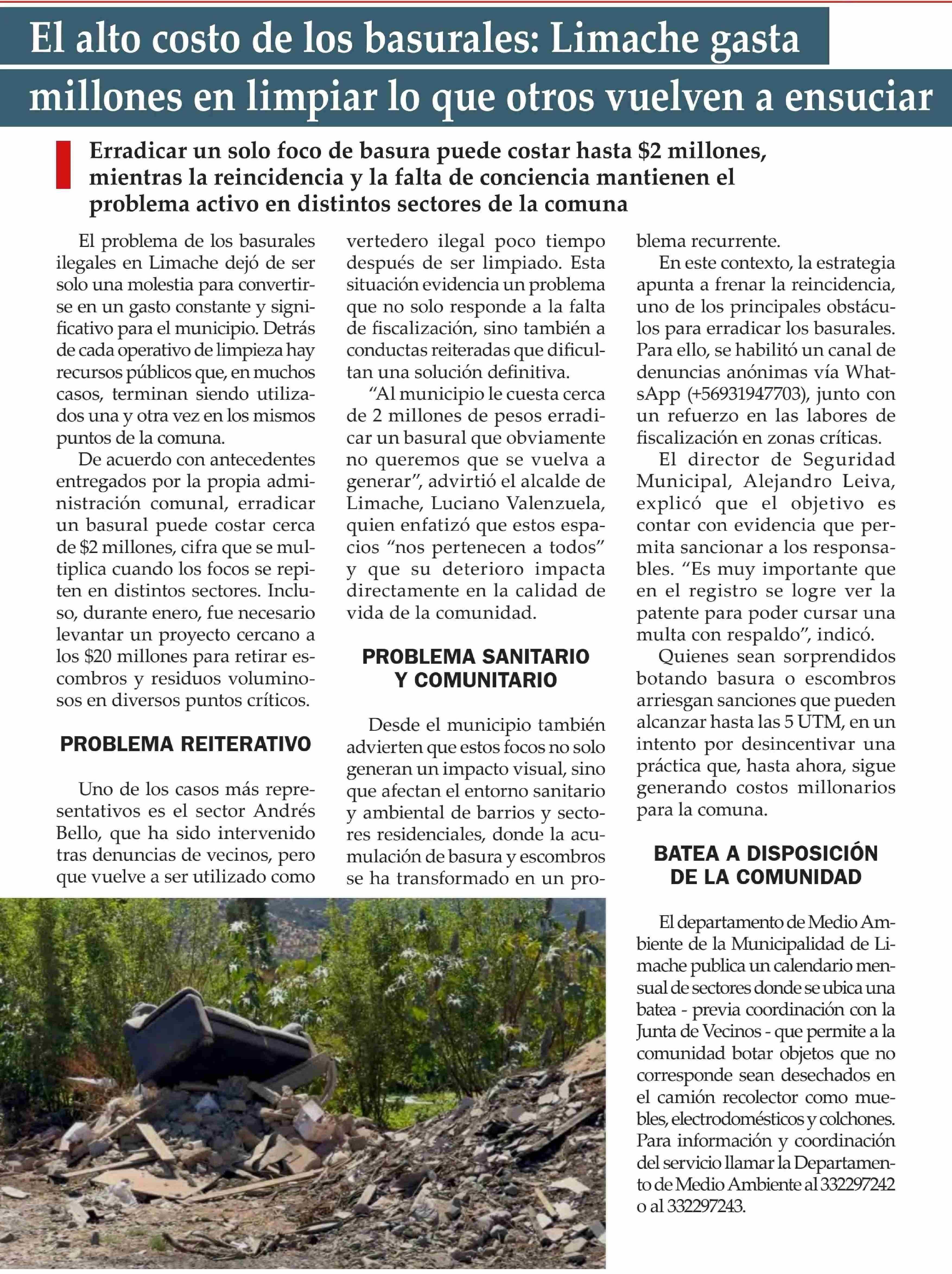 Título: El alto costo de los basurales: Limache gasta millones en limpiar lo que otros vuelven a ensuciar