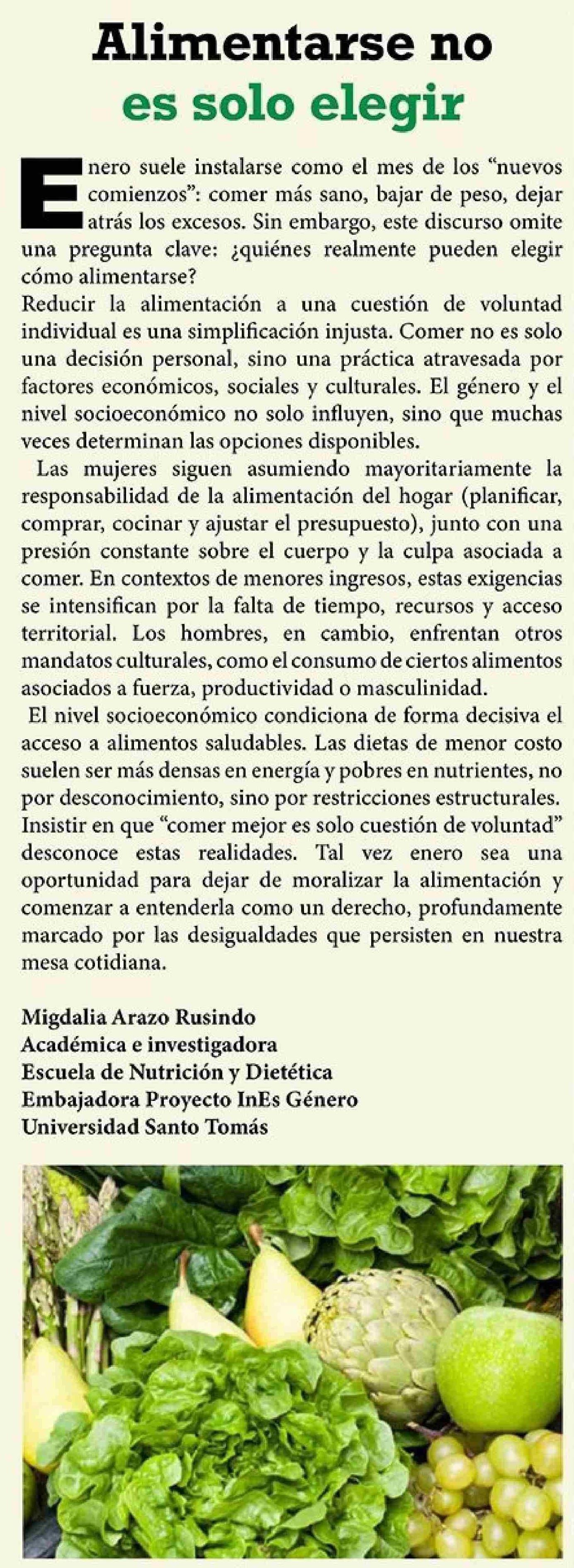 Alimentarse no es solo elegir 09-01-2026 El Heraldo Austral |