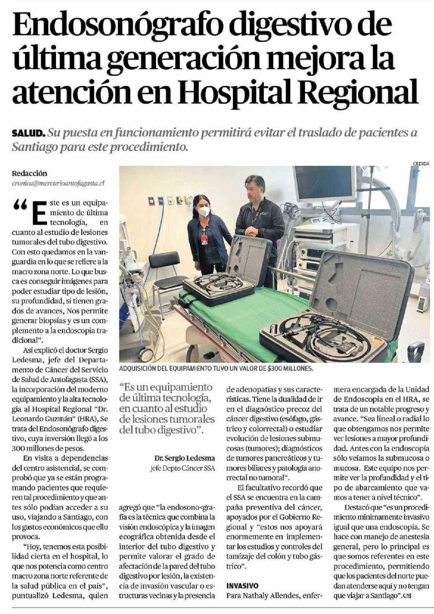 Endosonógrafo digestivo de última generación mejora la atención en Hospital Regional 03-02-2024 El Mercurio de Antofagasta |